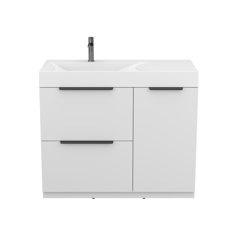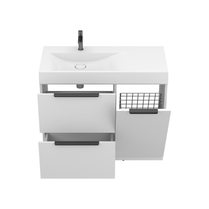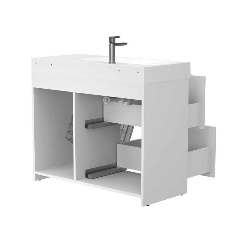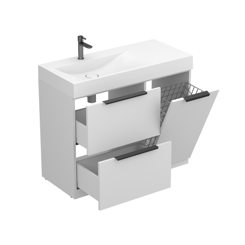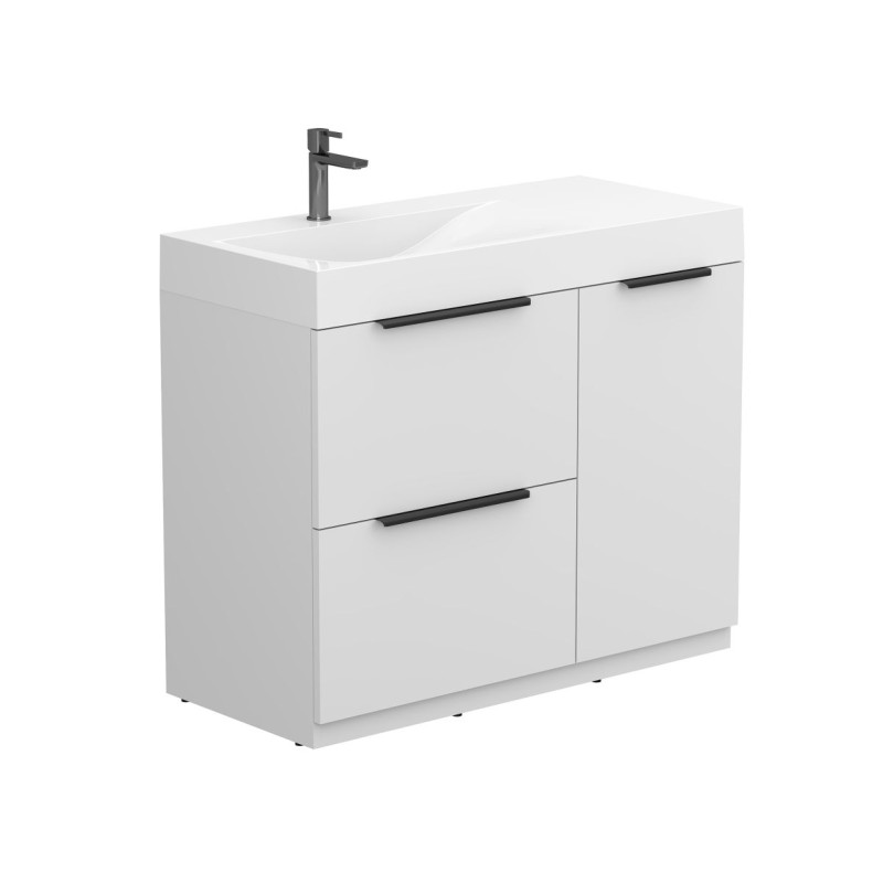 Тумба підлогова ALBA Біла з умивальником VIOLA 1000 L від бренду MIRAGGIO — практичне та стильне рішення для ванної кімнати дому, готелю чи апартаментів.