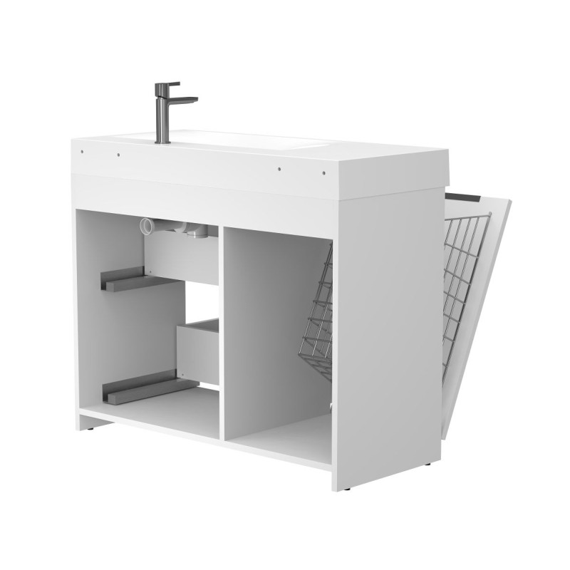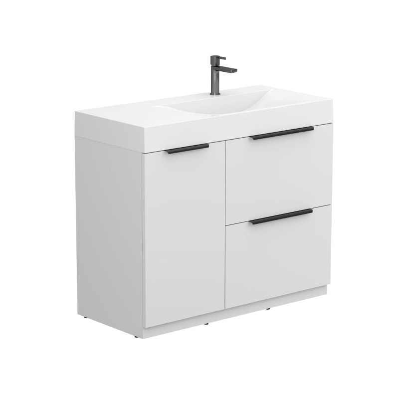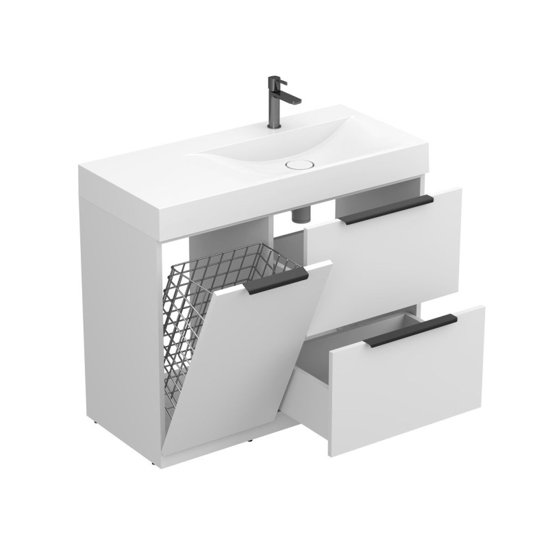 Тумба підлогова ALBA Біла з умивальником VIOLA 1000 R від бренду MIRAGGIO — практичне та стильне рішення для ванної кімнати дому, готелю чи апартаментів.