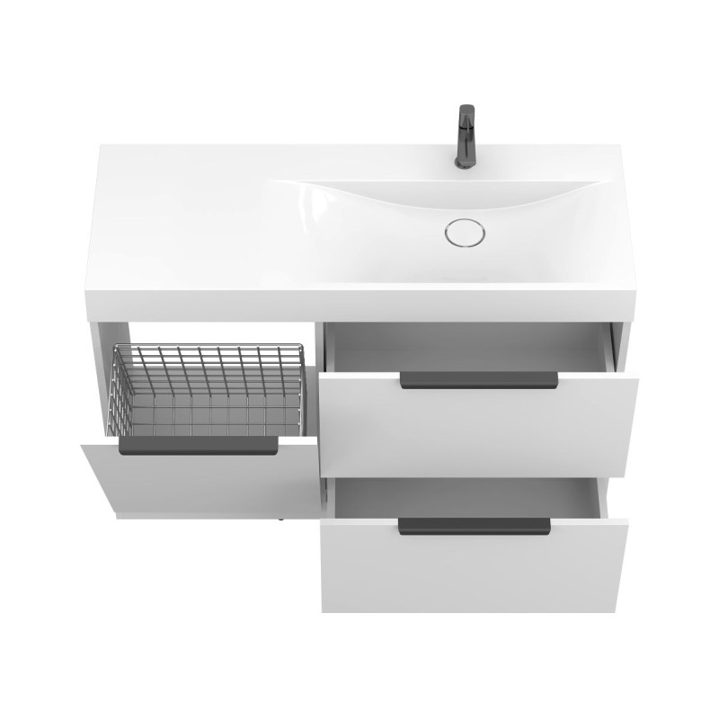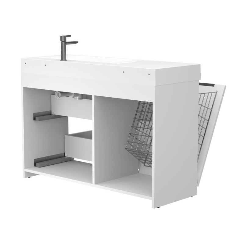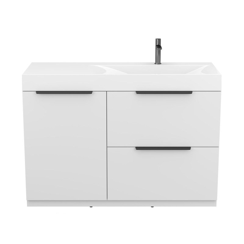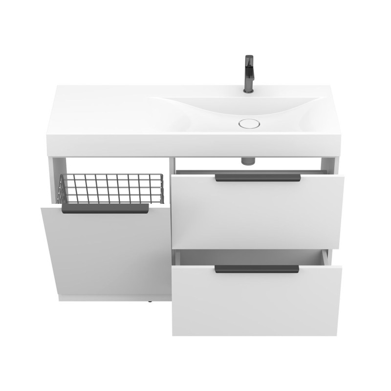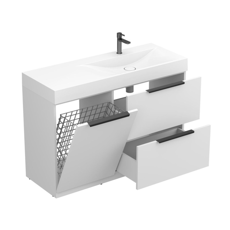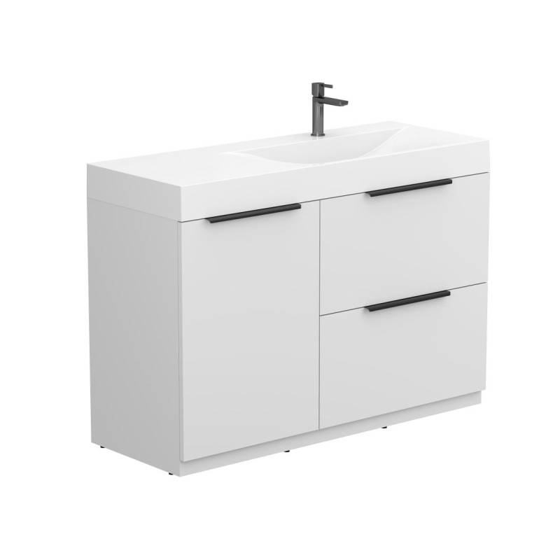 Тумба підлогова ALBA Біла з умивальником VIOLA 1200 R від бренду MIRAGGIO — практичне та стильне рішення для ванної кімнати дому, готелю чи апартаментів.