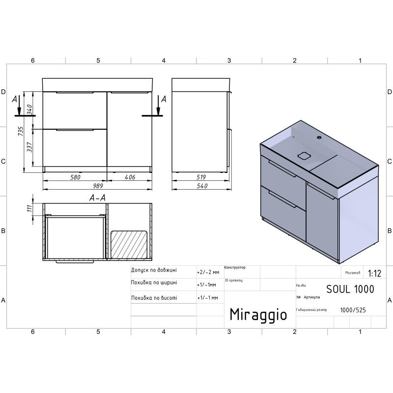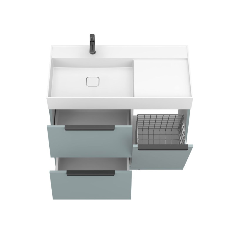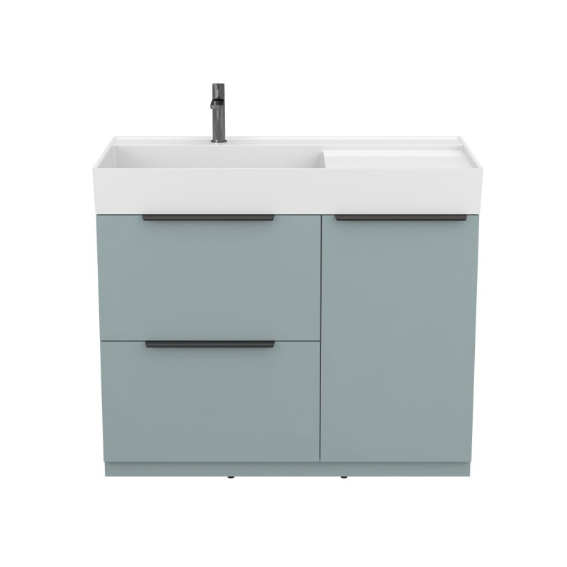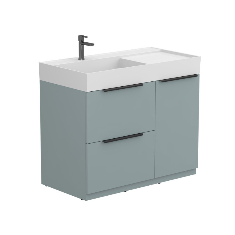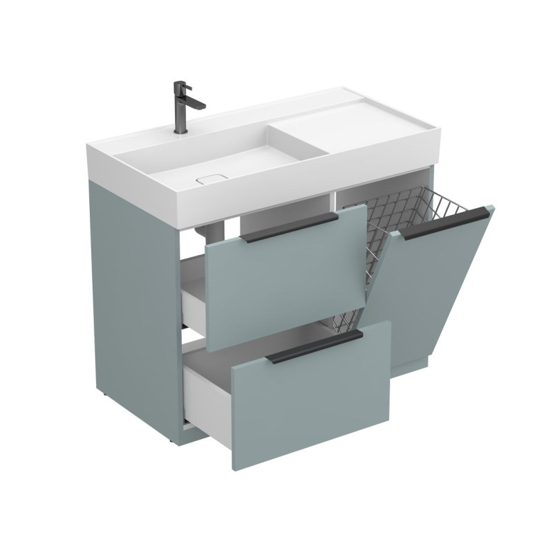 Тумба підлогова ALBA Лагуна з умивальником SOUL 1000 від бренду MIRAGGIO — практичне та стильне рішення для ванної кімнати дому, готелю чи апартаментів.