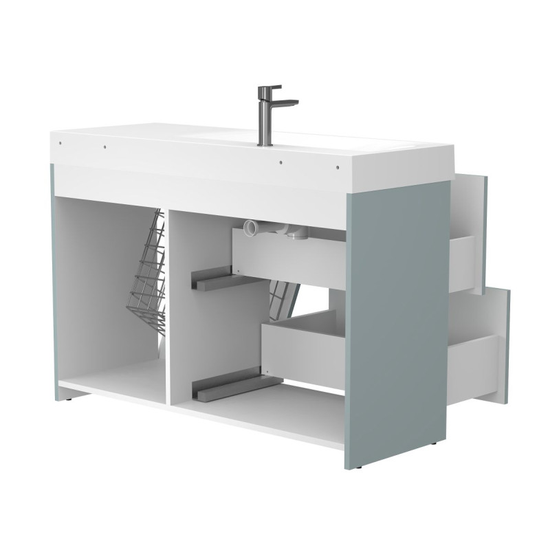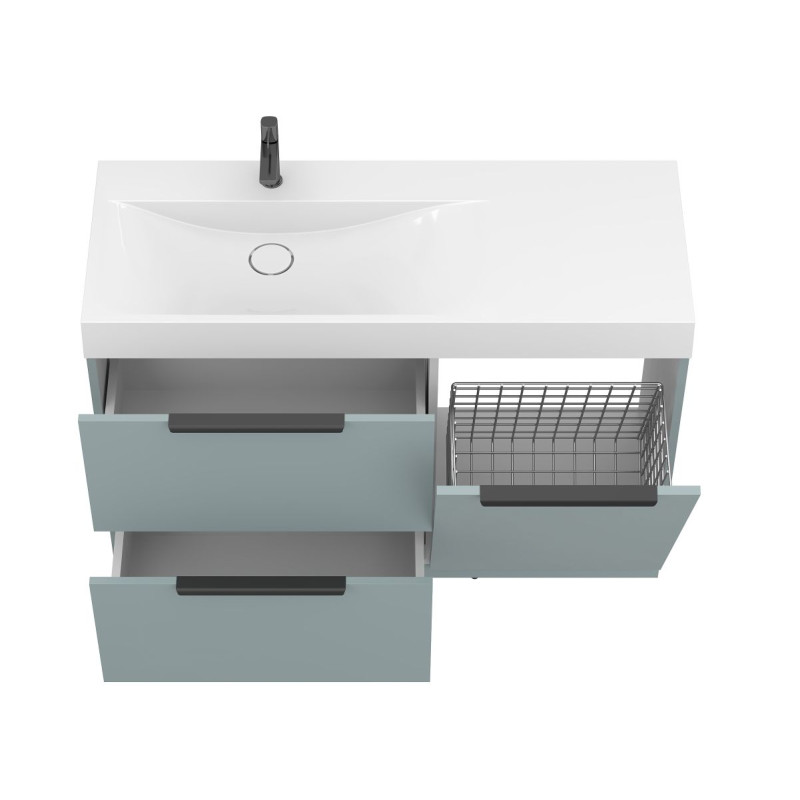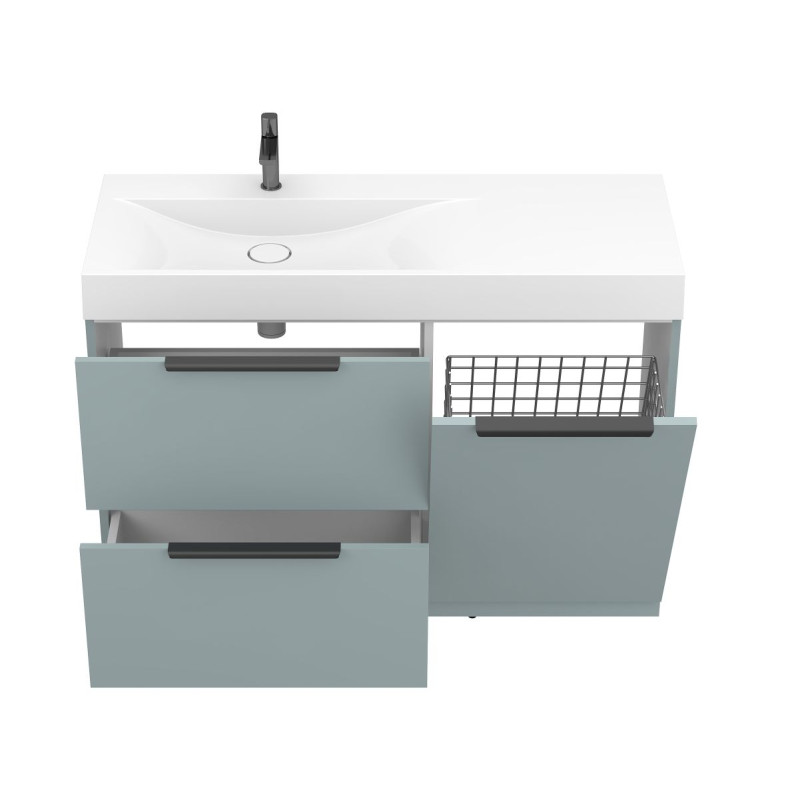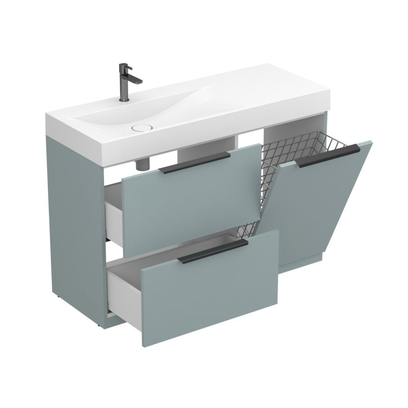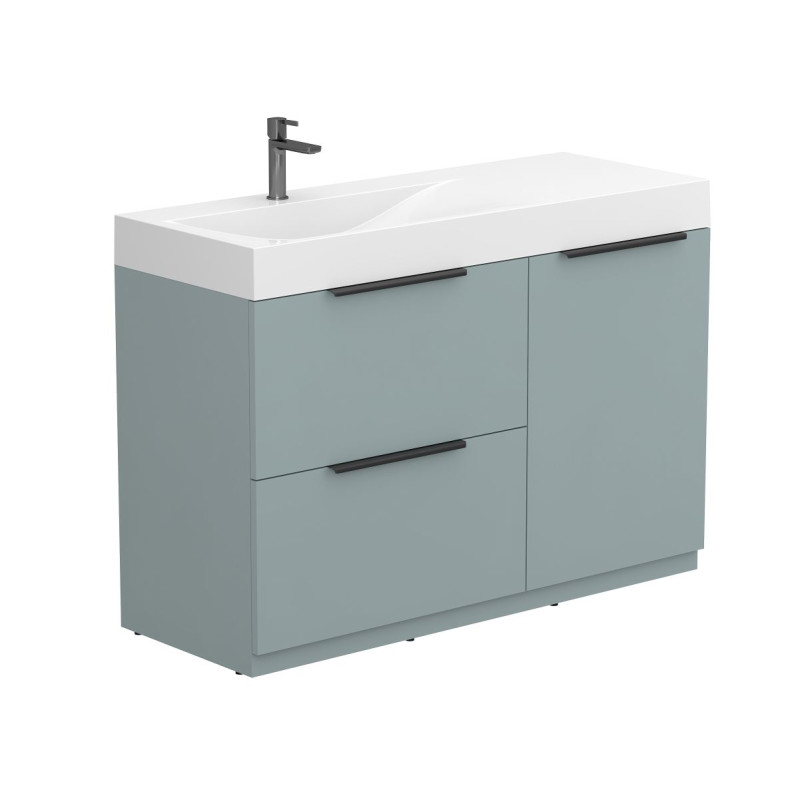 Тумба підлогова ALBA Лагуна з умивальником VIOLA 1200 L від бренду MIRAGGIO — практичне та стильне рішення для ванної кімнати дому, готелю чи апартаментів.