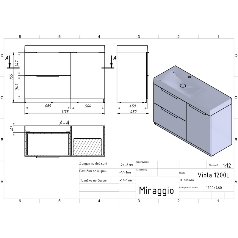 | Раковина в комплекті | VIOLA 1200 L |
