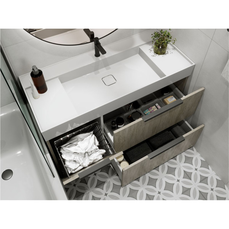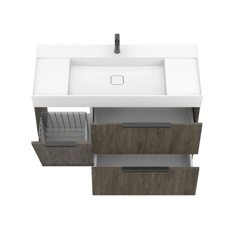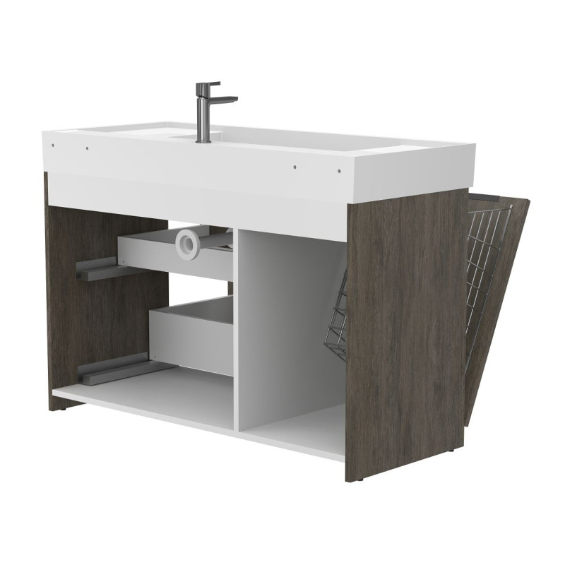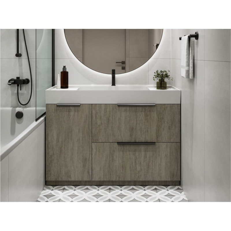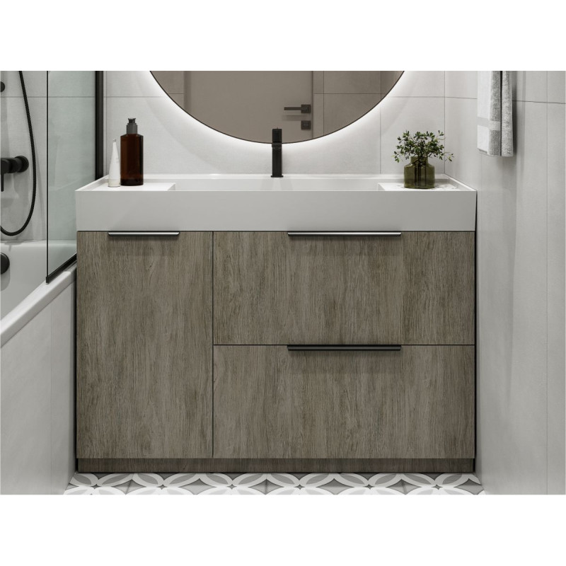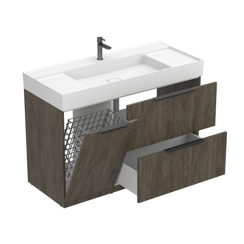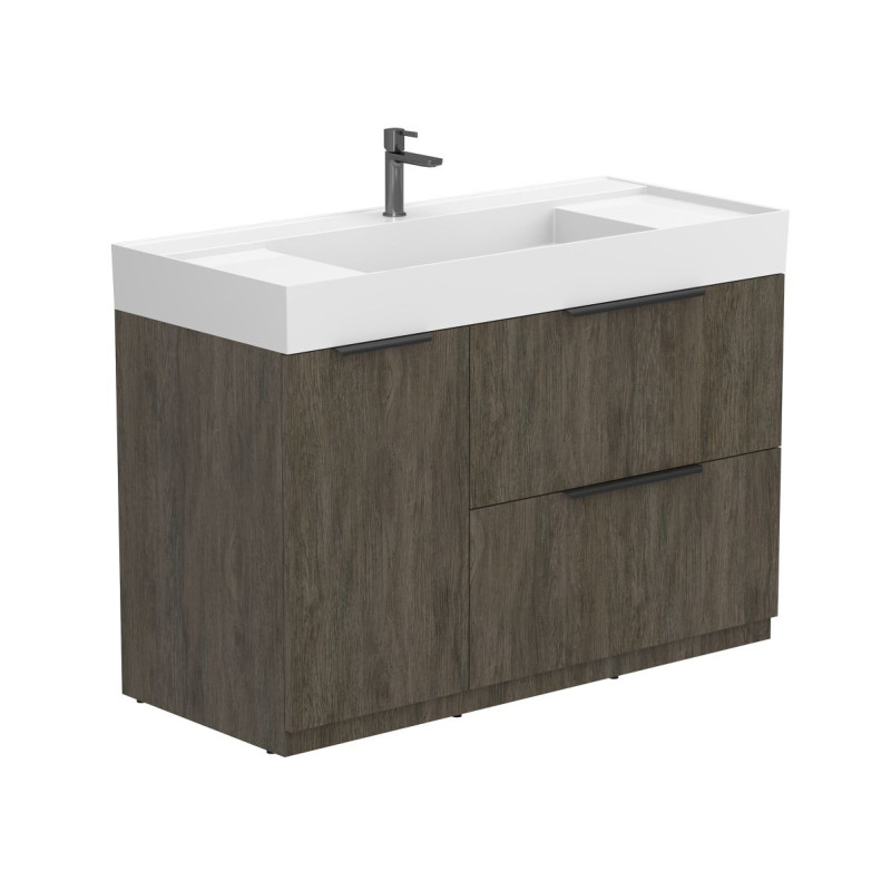 Тумба підлогова ALBA Толедо темне дерево з умивальником SOUL 1200 від бренду MIRAGGIO — практичне та стильне рішення для ванної кімнати дому, готелю чи апартаментів.