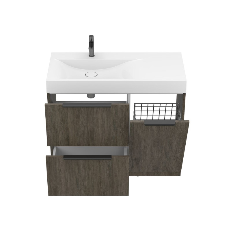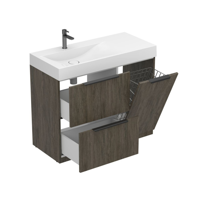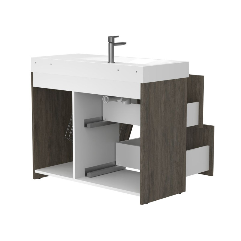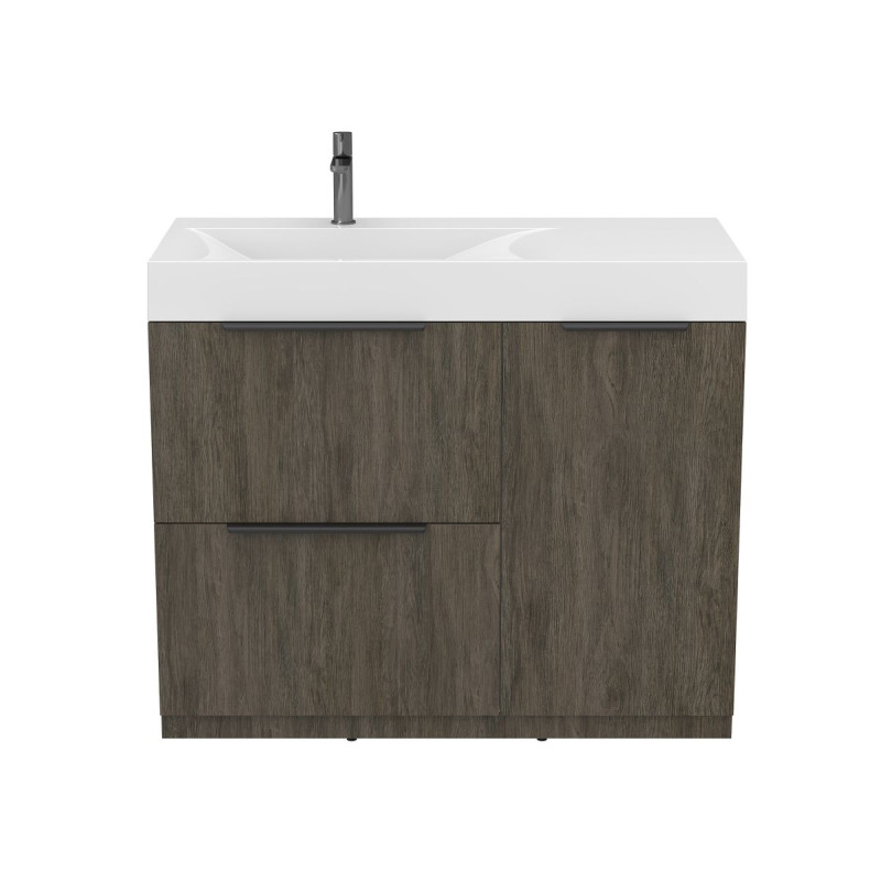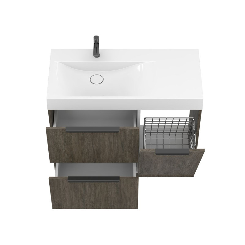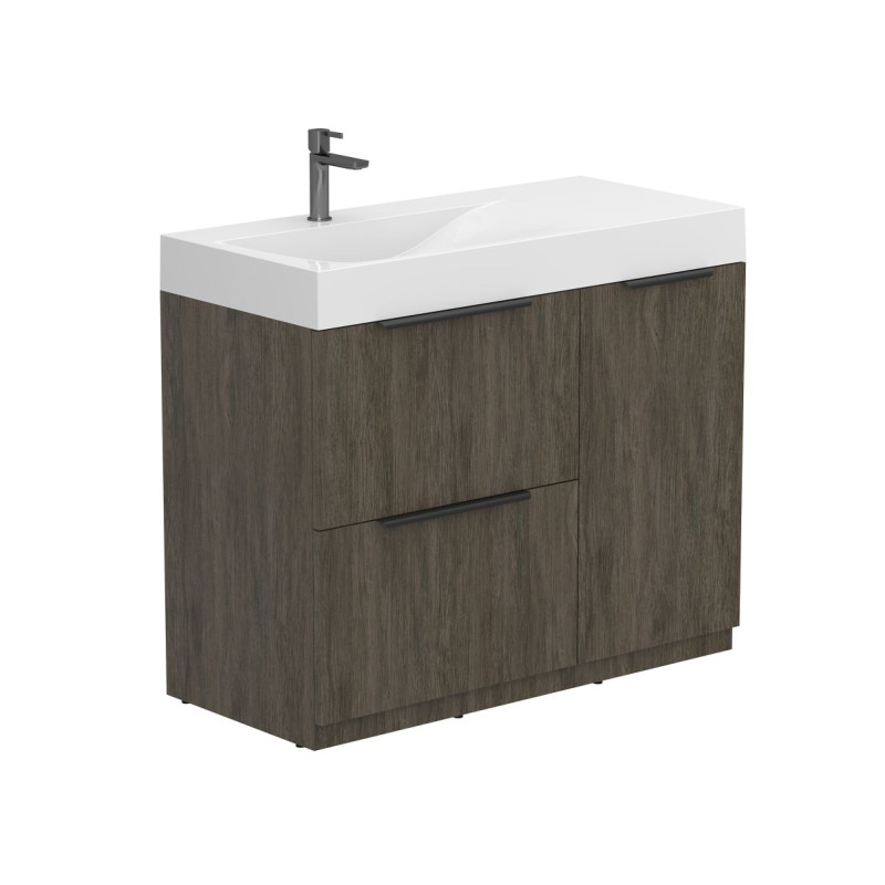 Тумба підлогова ALBA Толедо темне дерево з умивальником VIOLA 1000 L від бренду MIRAGGIO — практичне та стильне рішення для ванної кімнати дому, готелю чи апартаментів.