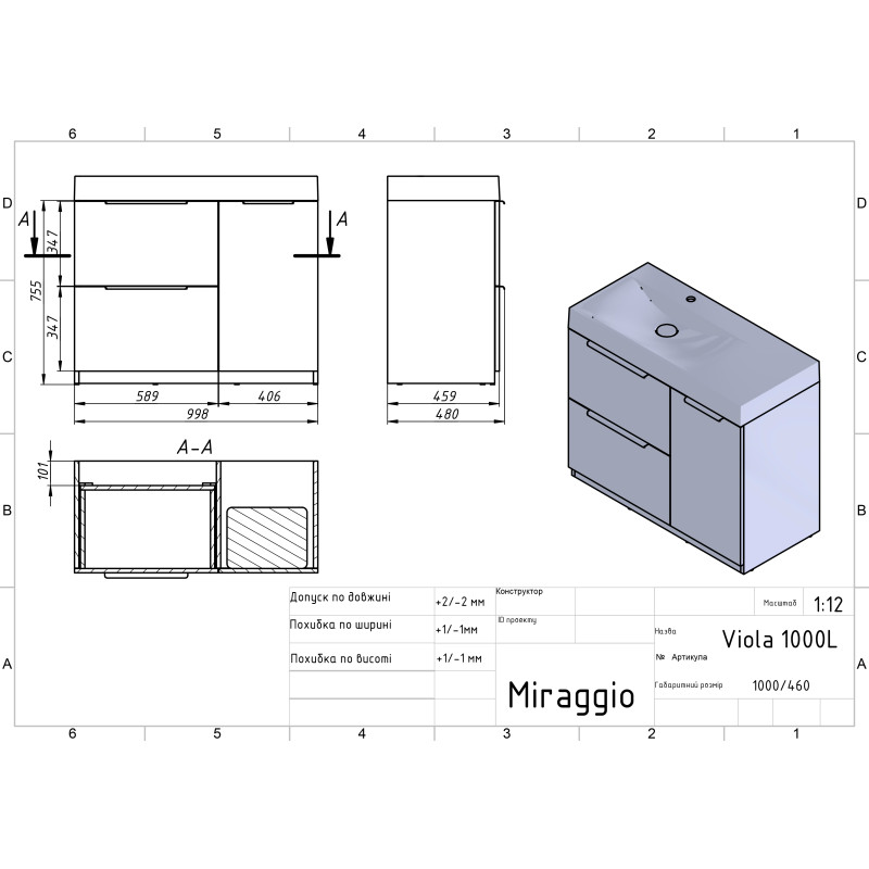 | Раковина в комплекті | VIOLA 1000 L |