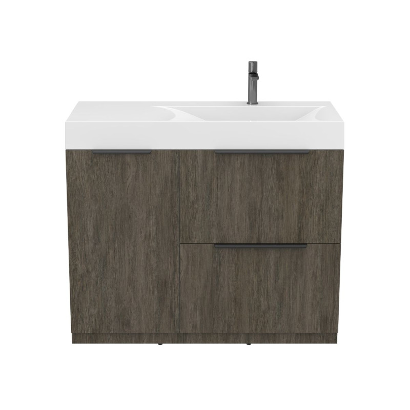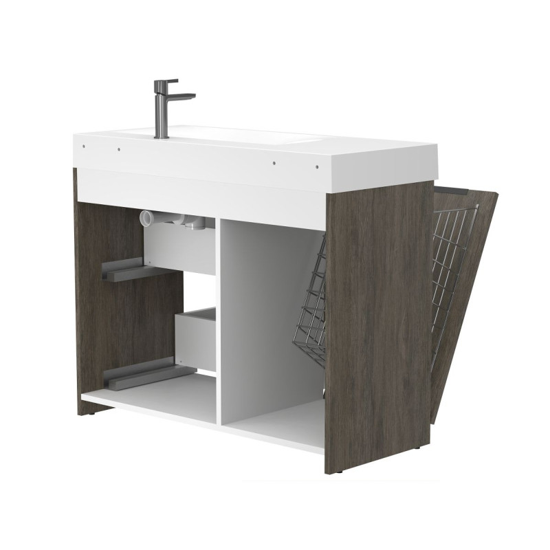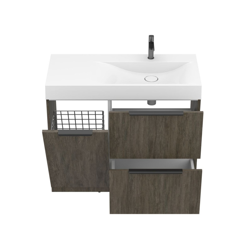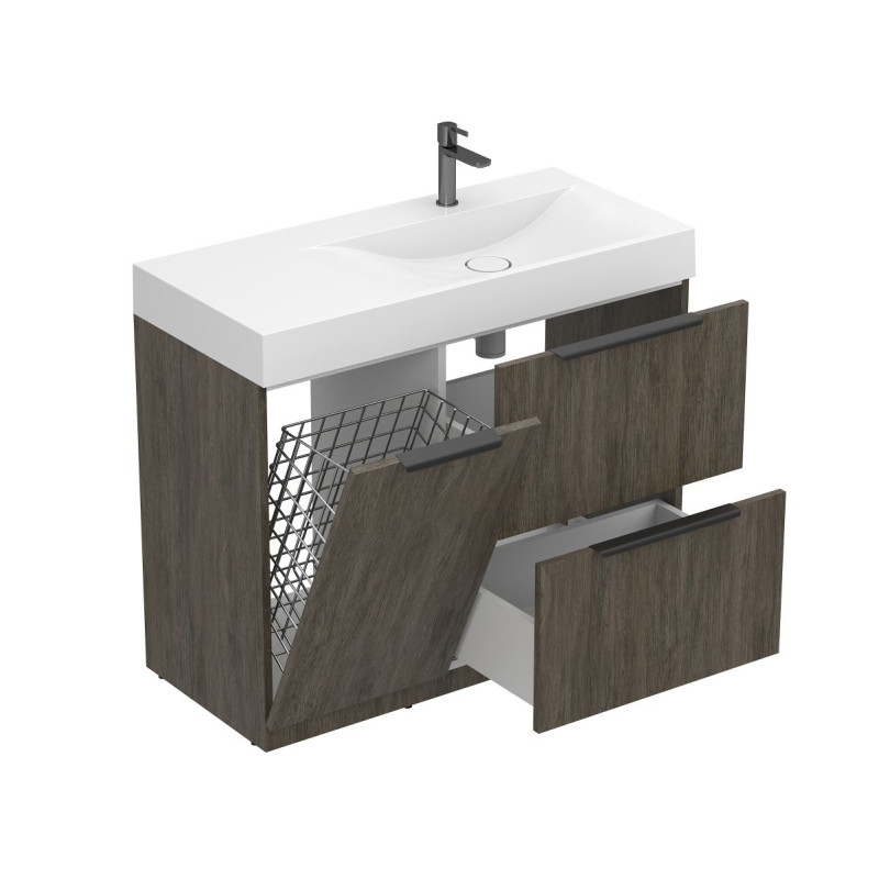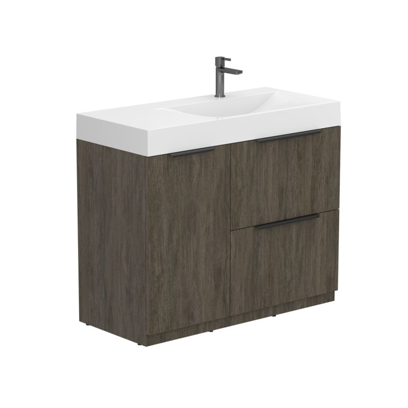 Тумба підлогова ALBA Толедо темне дерево з умивальником VIOLA 1000 R від бренду MIRAGGIO — практичне та стильне рішення для ванної кімнати дому, готелю чи апартаментів.