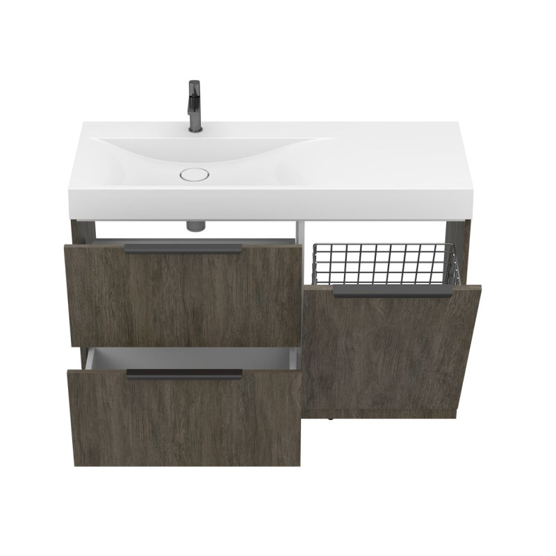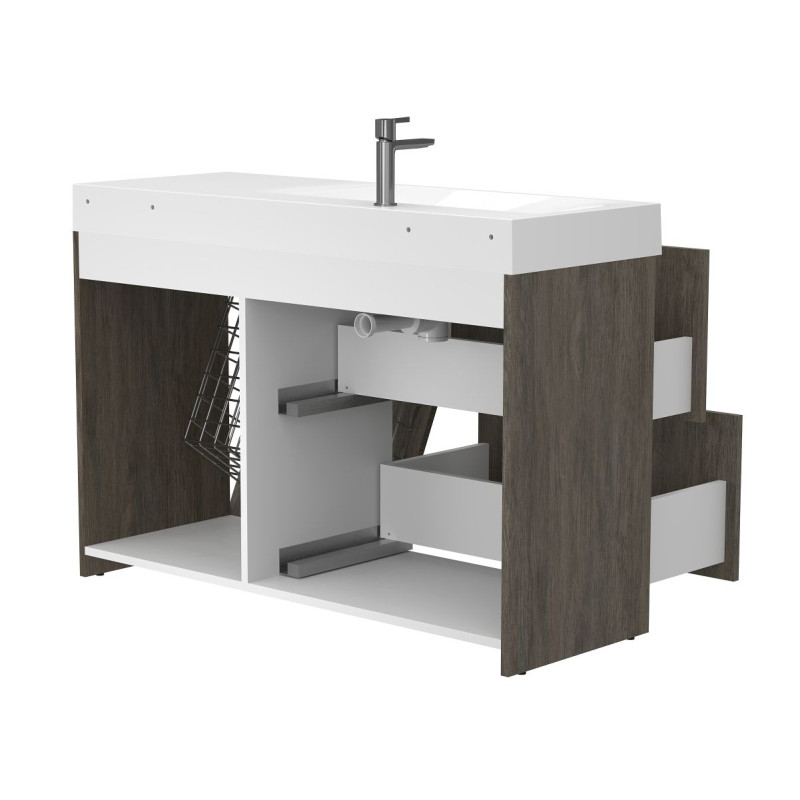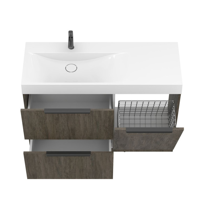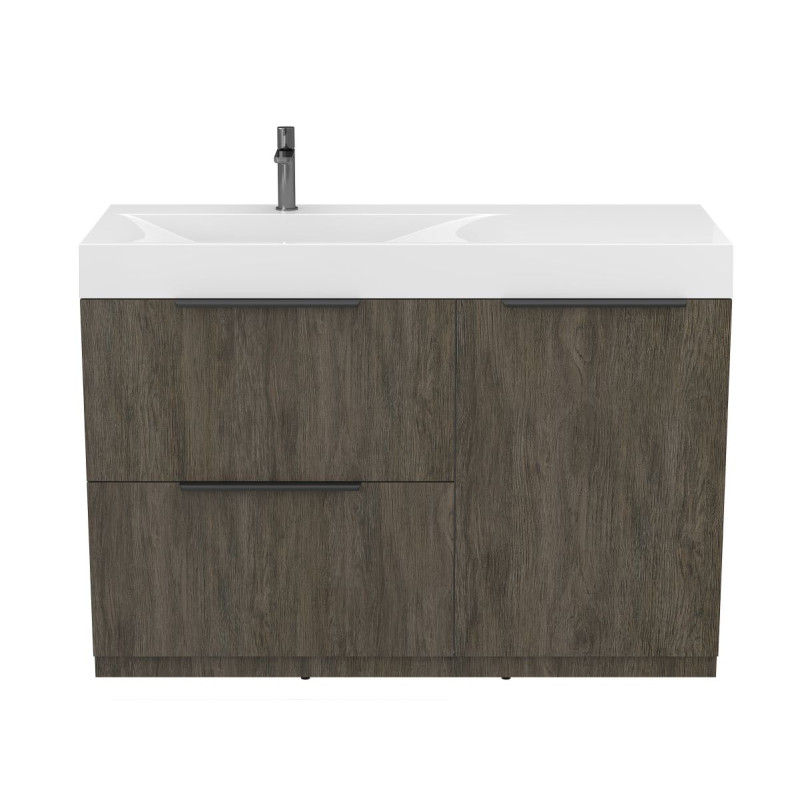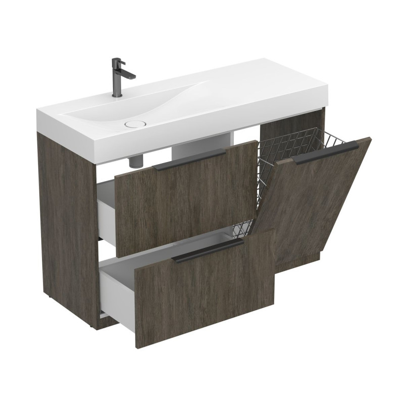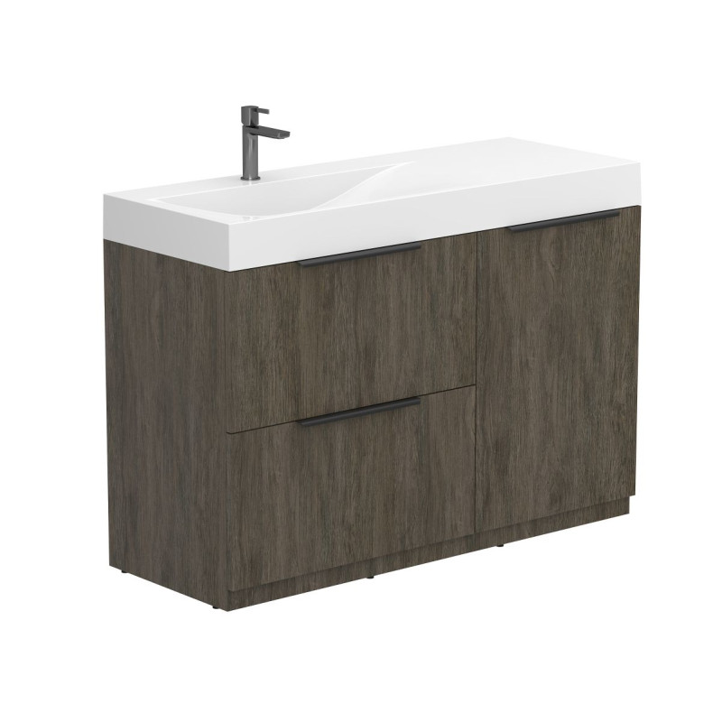 Тумба підлогова ALBA Толедо темне дерево з умивальником VIOLA 1200 L від бренду MIRAGGIO — практичне та стильне рішення для ванної кімнати дому, готелю чи апартаментів.