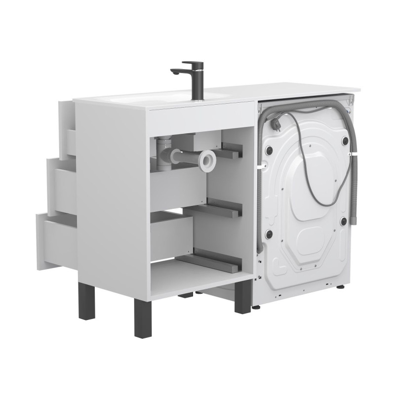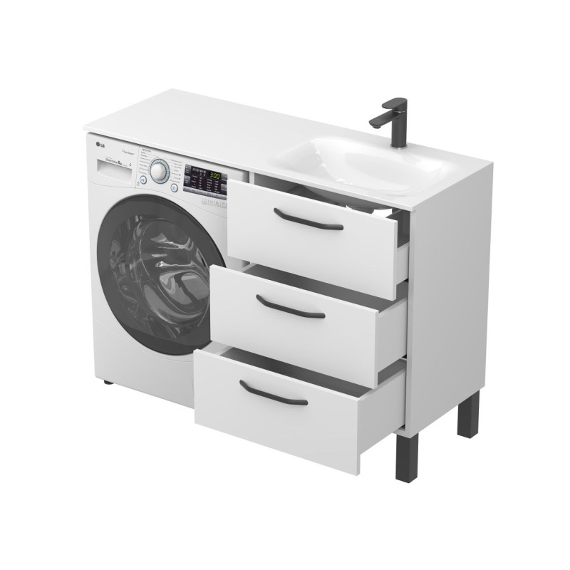 Тумба підлогова TESSA Біла з умивальником JESSEL 1200 R від бренду MIRAGGIO — практичне та стильне рішення для ванної кімнати дому, готелю чи апартаментів.