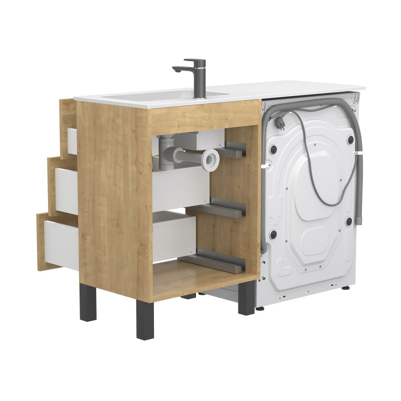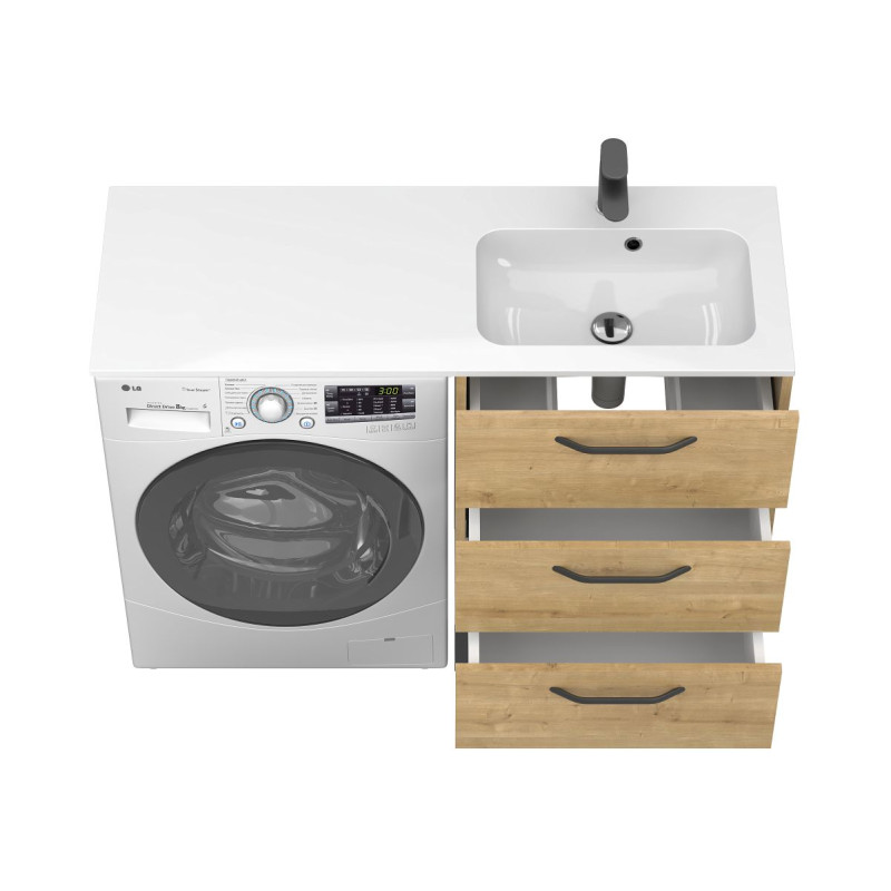 Тумба підлогова TESSA Дуб Гамільтон з умивальником DELLA 1200 R від бренду MIRAGGIO — практичне та стильне рішення для ванної кімнати дому, готелю чи апартаментів.