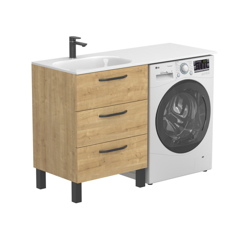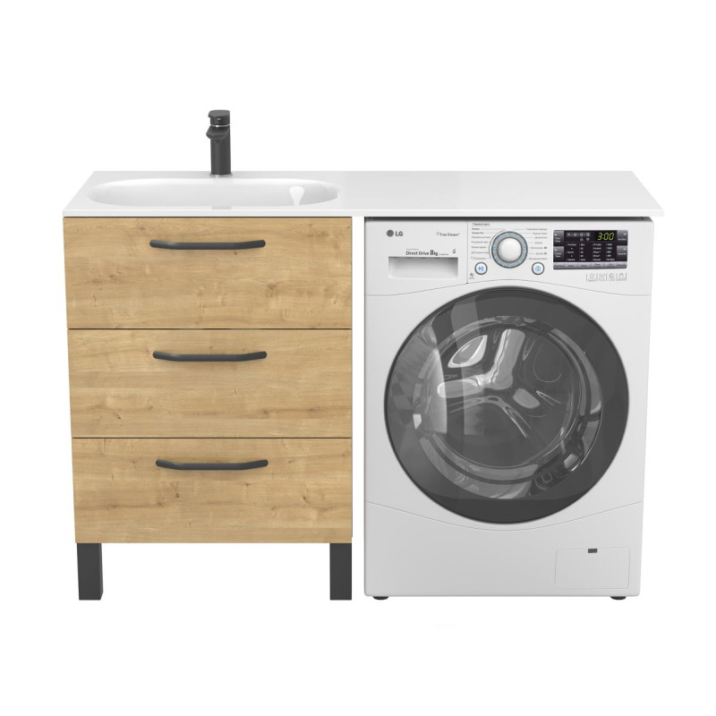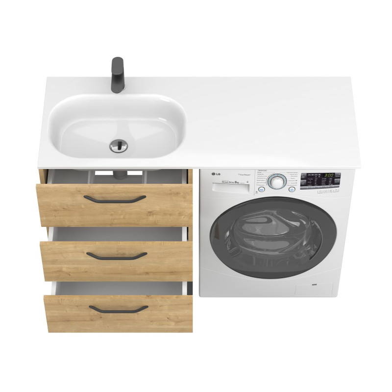 Тумба підлогова TESSA Дуб Гамільтон з умивальником LAKE 1250 L від бренду MIRAGGIO — практичне та стильне рішення для ванної кімнати дому, готелю чи апартаментів.