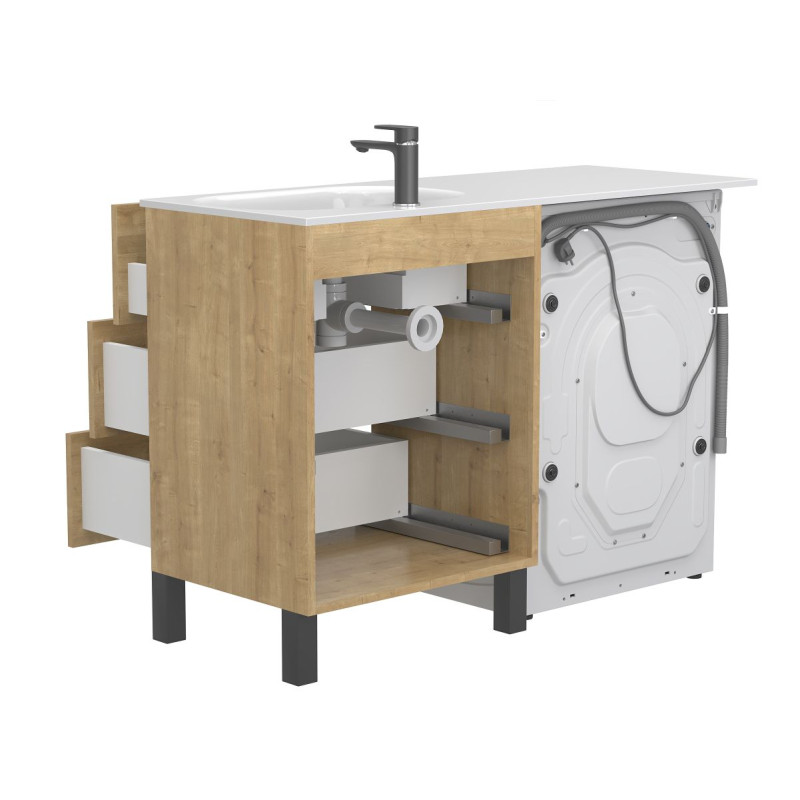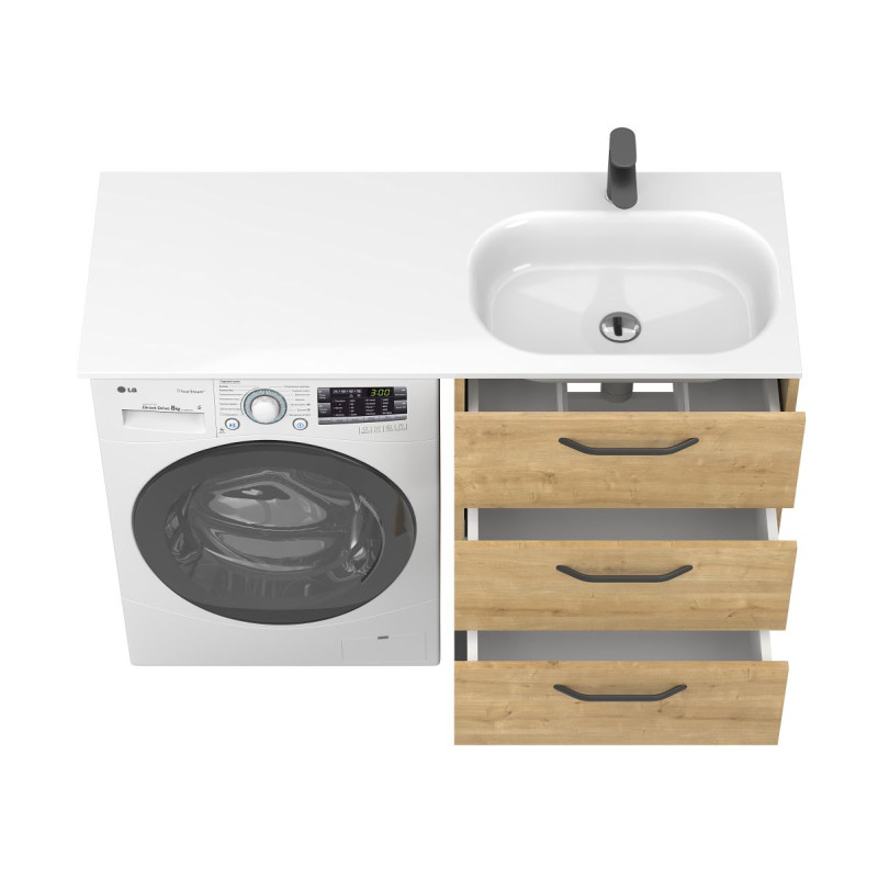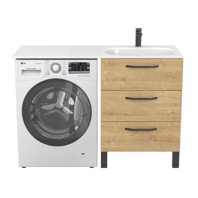 Тумба підлогова TESSA Дуб Гамільтон з умивальником LAKE 1250 R від бренду MIRAGGIO — практичне та стильне рішення для ванної кімнати дому, готелю чи апартаментів.
