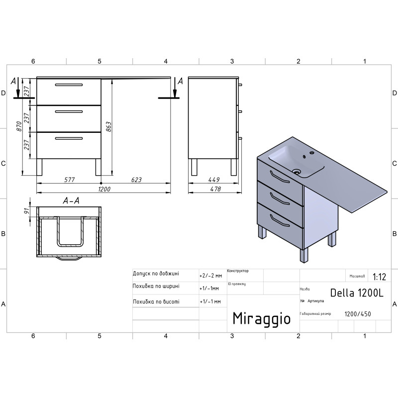 | Комплектація | Умивальник, тумба у зібраному вигляді |