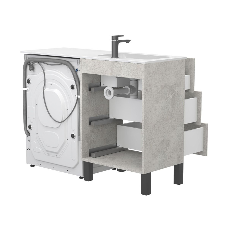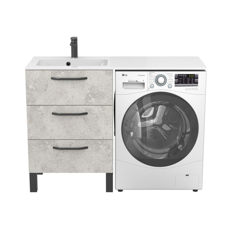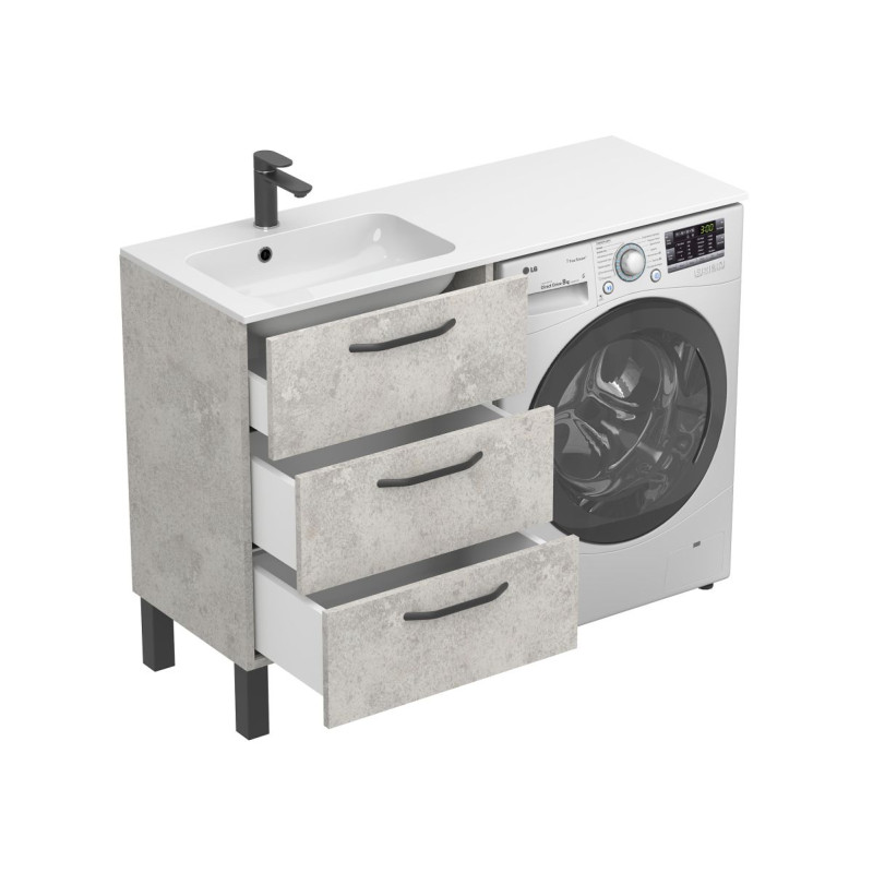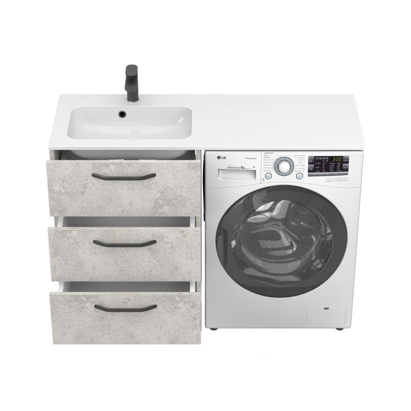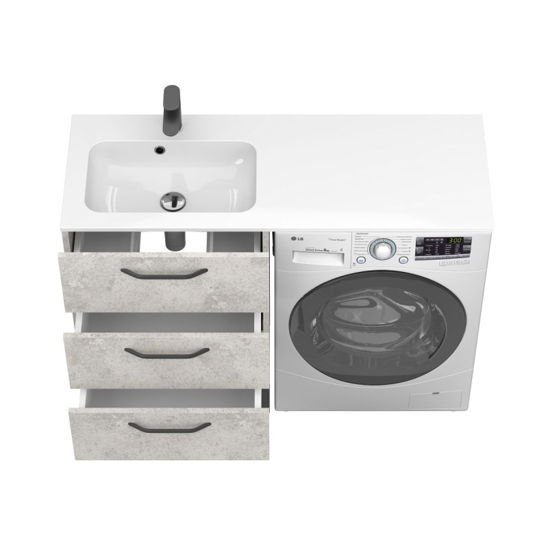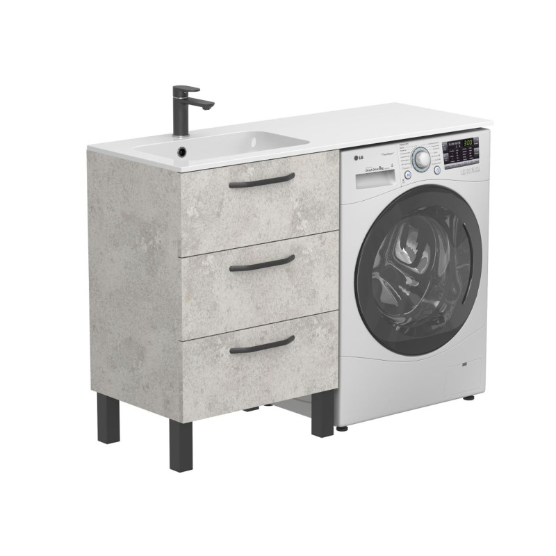 Тумба підлогова TESSA Камінь сірий з умивальником DELLA 1200 L від бренду MIRAGGIO — практичне та стильне рішення для ванної кімнати дому, готелю чи апартаментів.