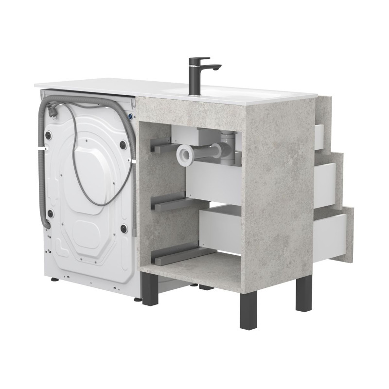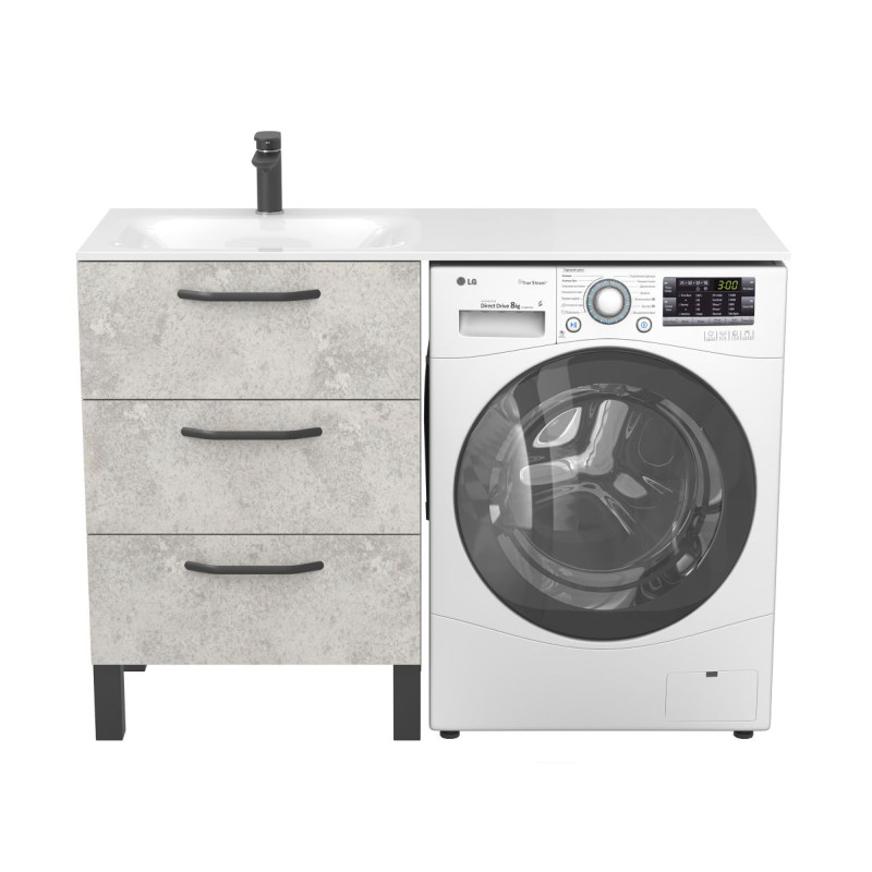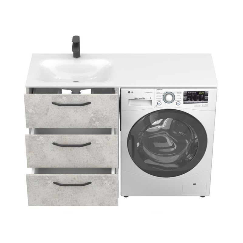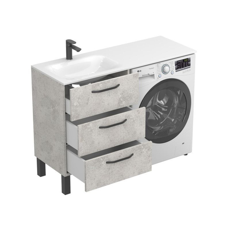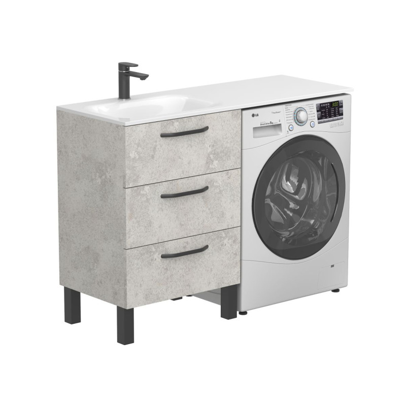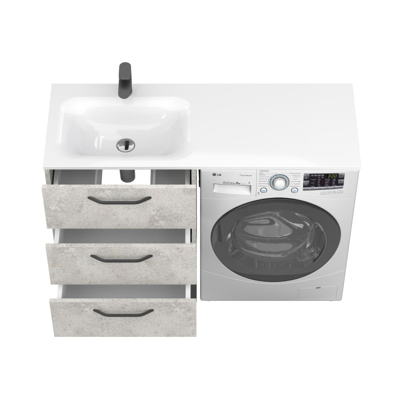 Тумба підлогова TESSA Камінь сірий з умивальником JESSEL 1200 L від бренду MIRAGGIO — практичне та стильне рішення для ванної кімнати дому, готелю чи апартаментів.
