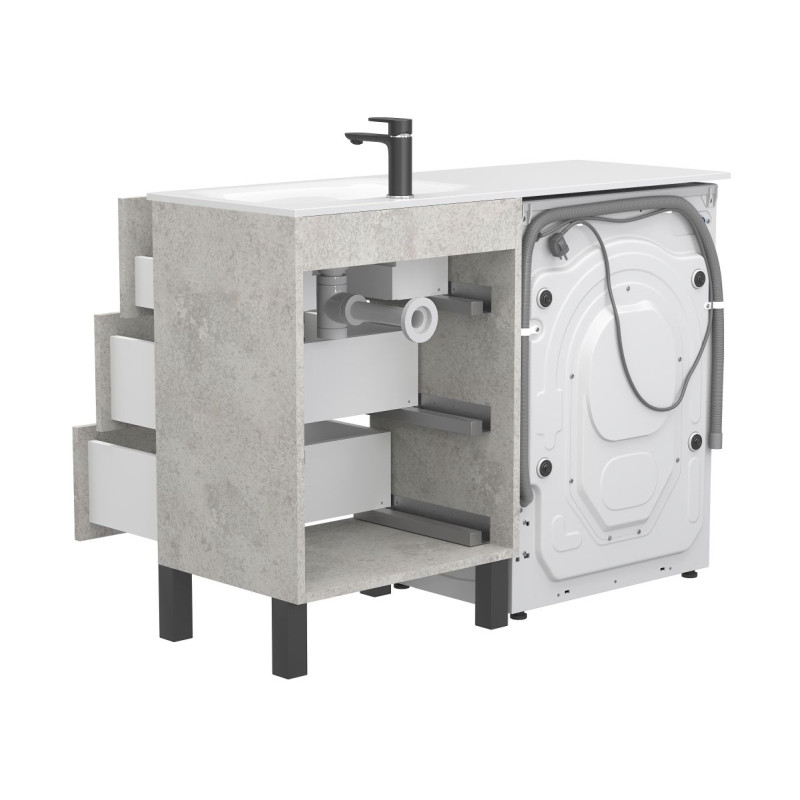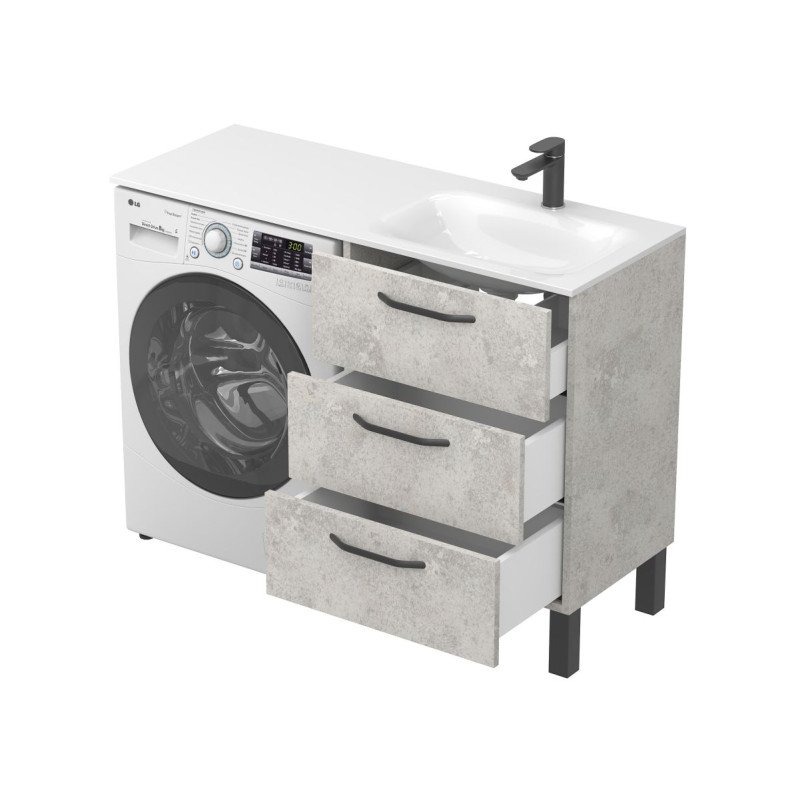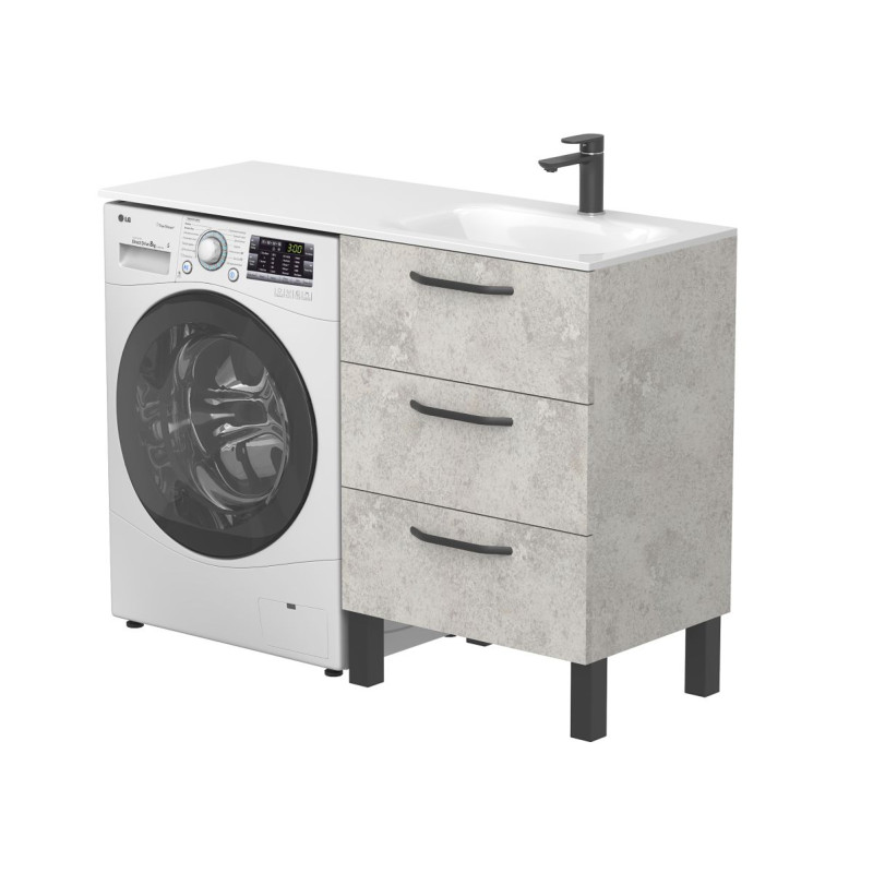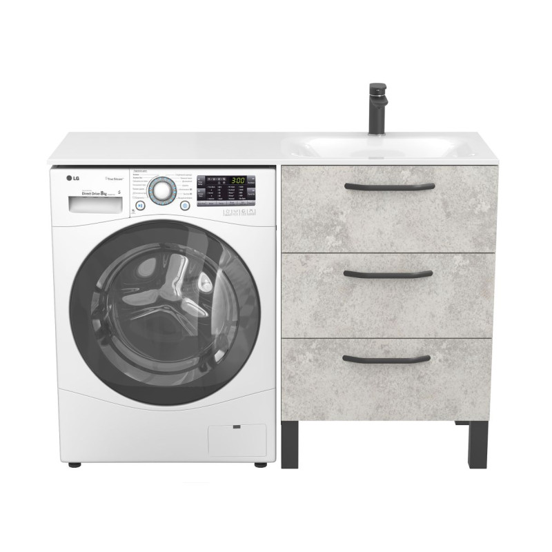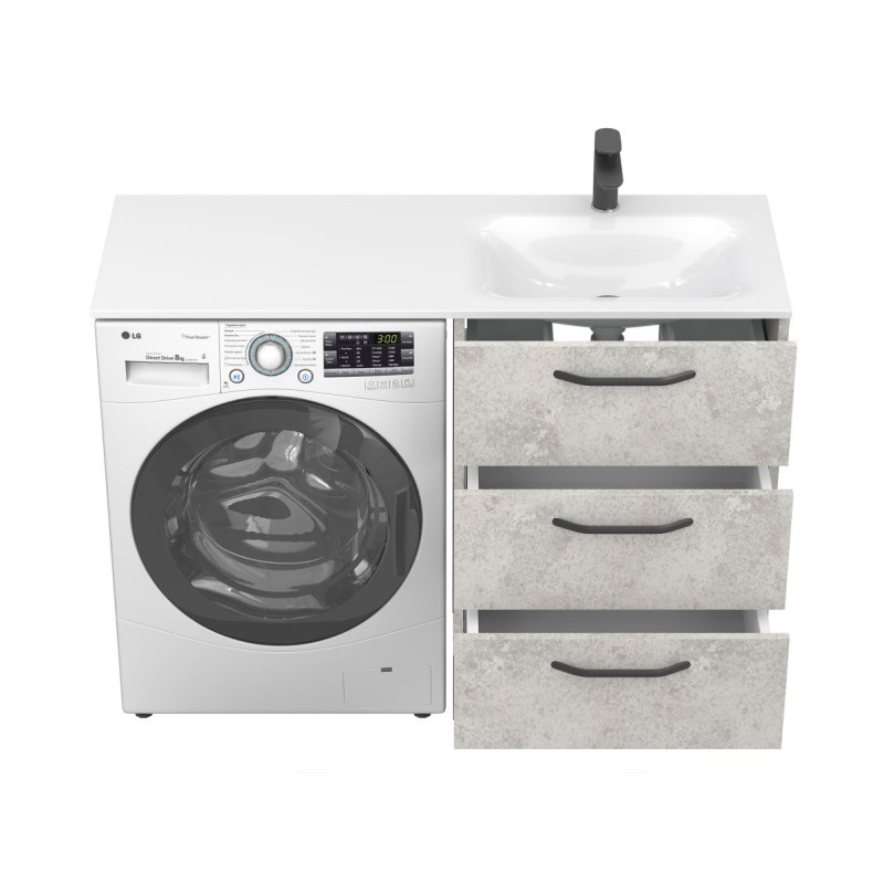 Тумба підлогова TESSA Камінь сірий з умивальником JESSEL 1200 R від бренду MIRAGGIO — практичне та стильне рішення для ванної кімнати дому, готелю чи апартаментів.