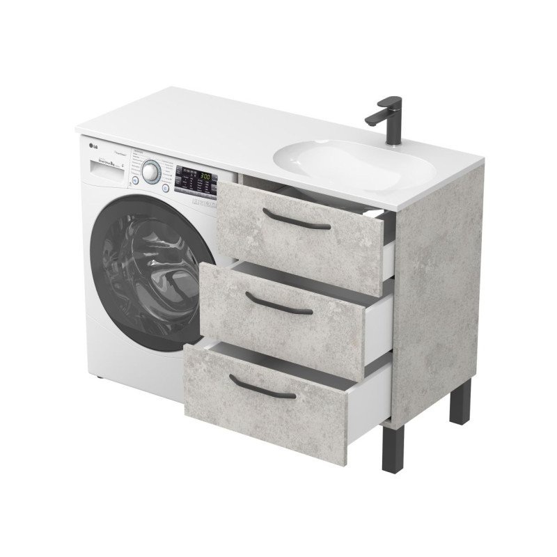 Тумба підлогова TESSA Камінь сірий з умивальником NEW YORK 1200 R від бренду MIRAGGIO — практичне та стильне рішення для ванної кімнати дому, готелю чи апартаментів.