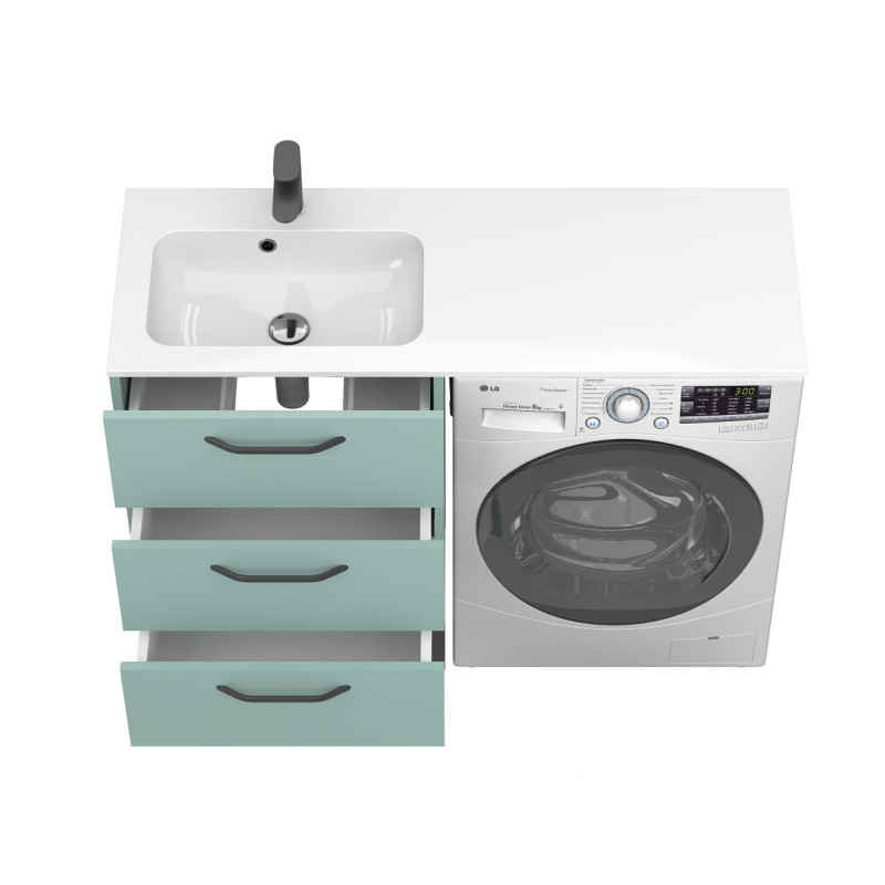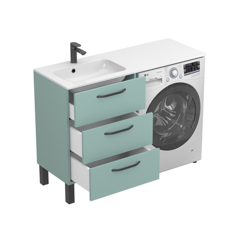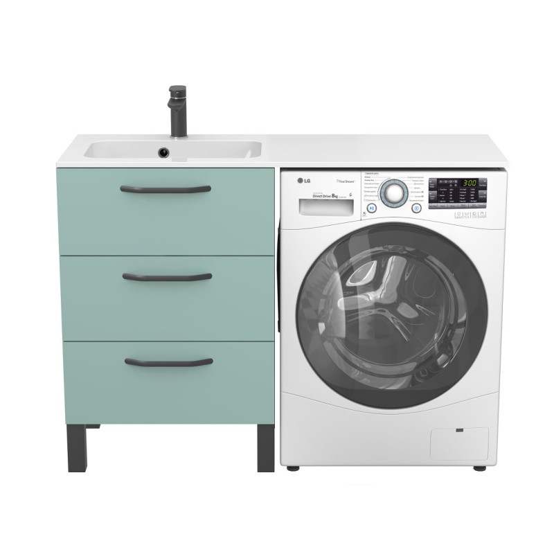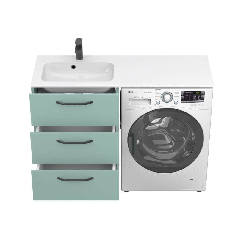 Тумба підлогова TESSA Зелена з умивальником DELLA 1200 L від бренду MIRAGGIO — практичне та стильне рішення для ванної кімнати дому, готелю чи апартаментів.