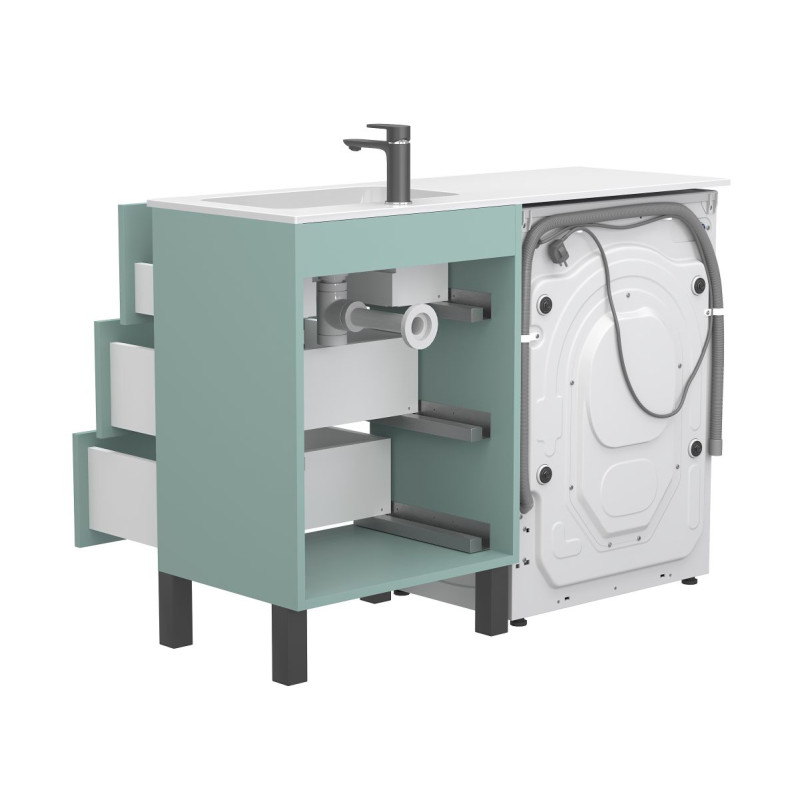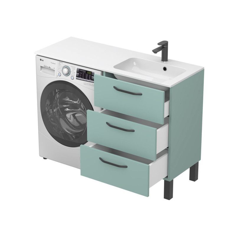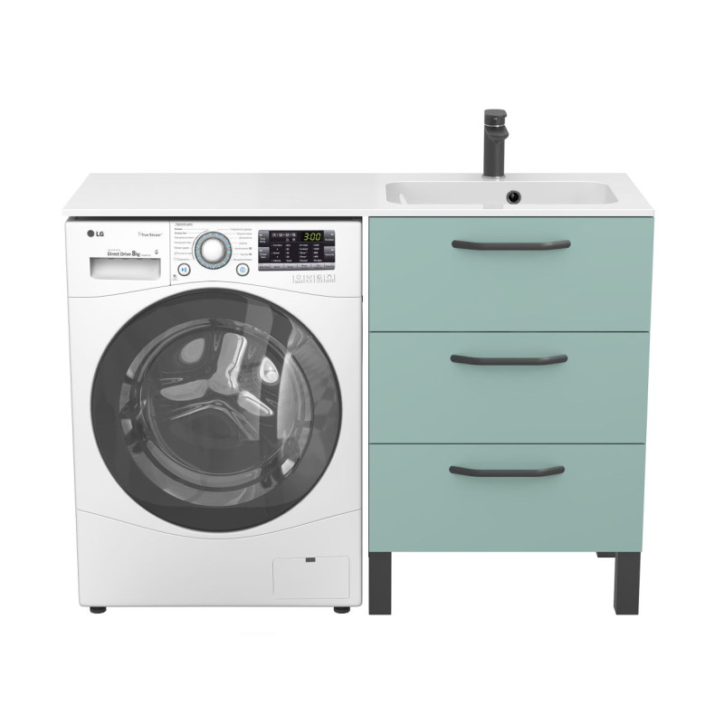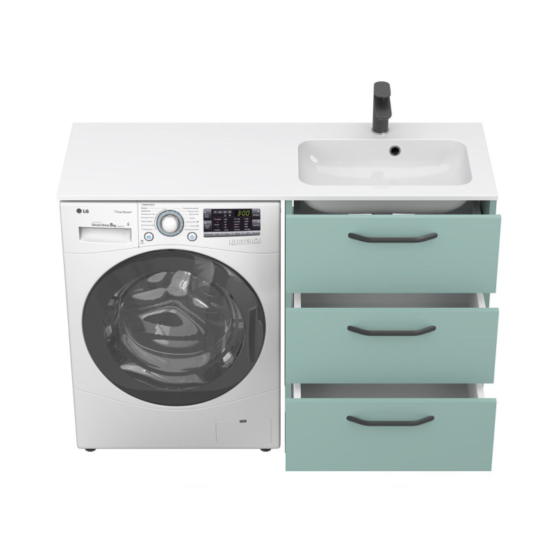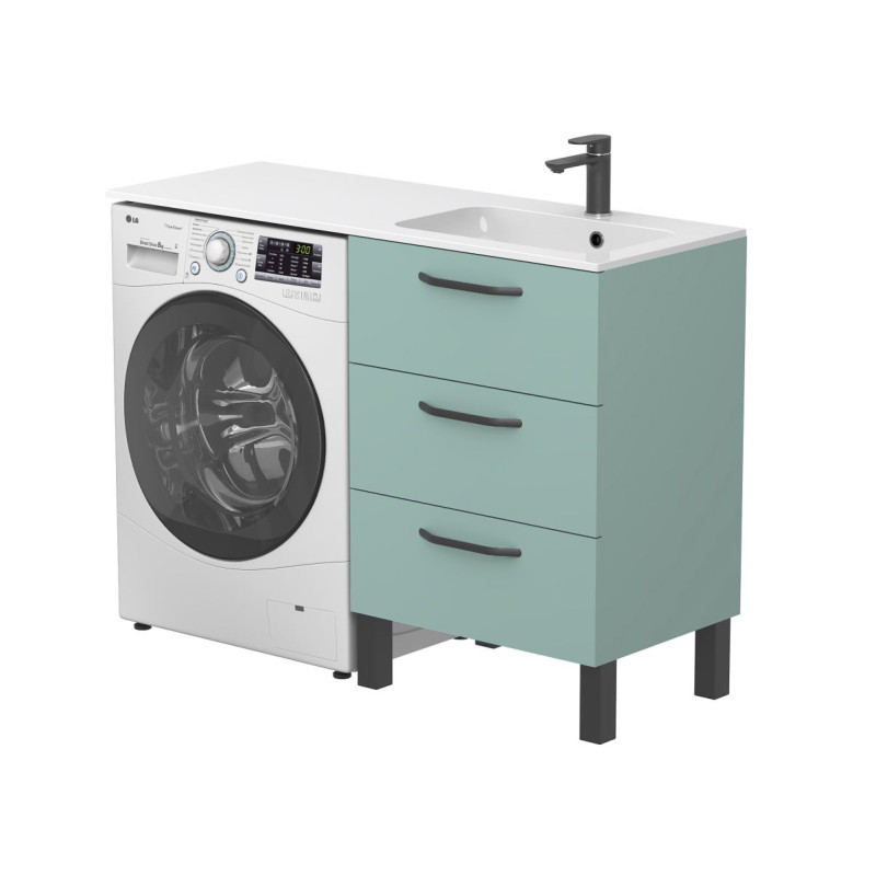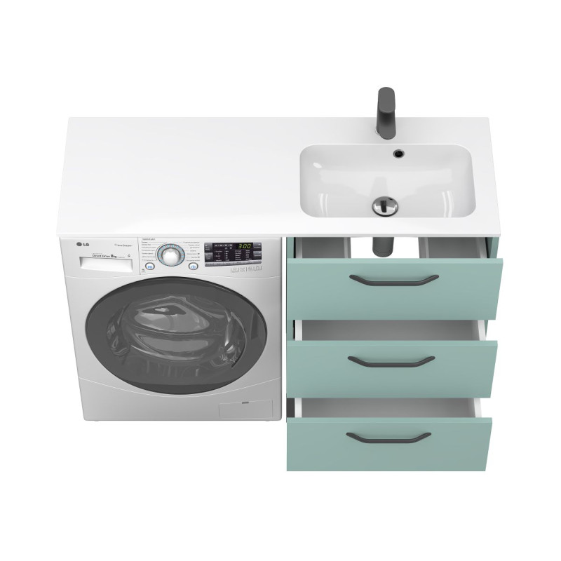Тумба підлогова TESSA Зелена з умивальником DELLA 1200 R від бренду MIRAGGIO — практичне та стильне рішення для ванної кімнати дому, готелю чи апартаментів.