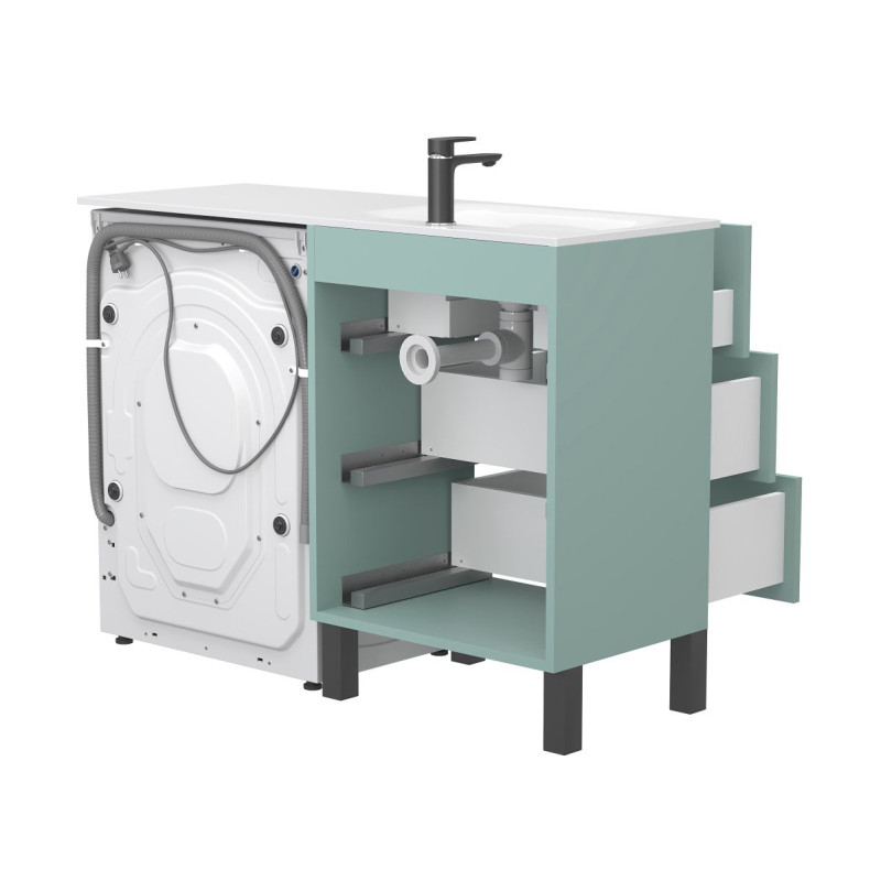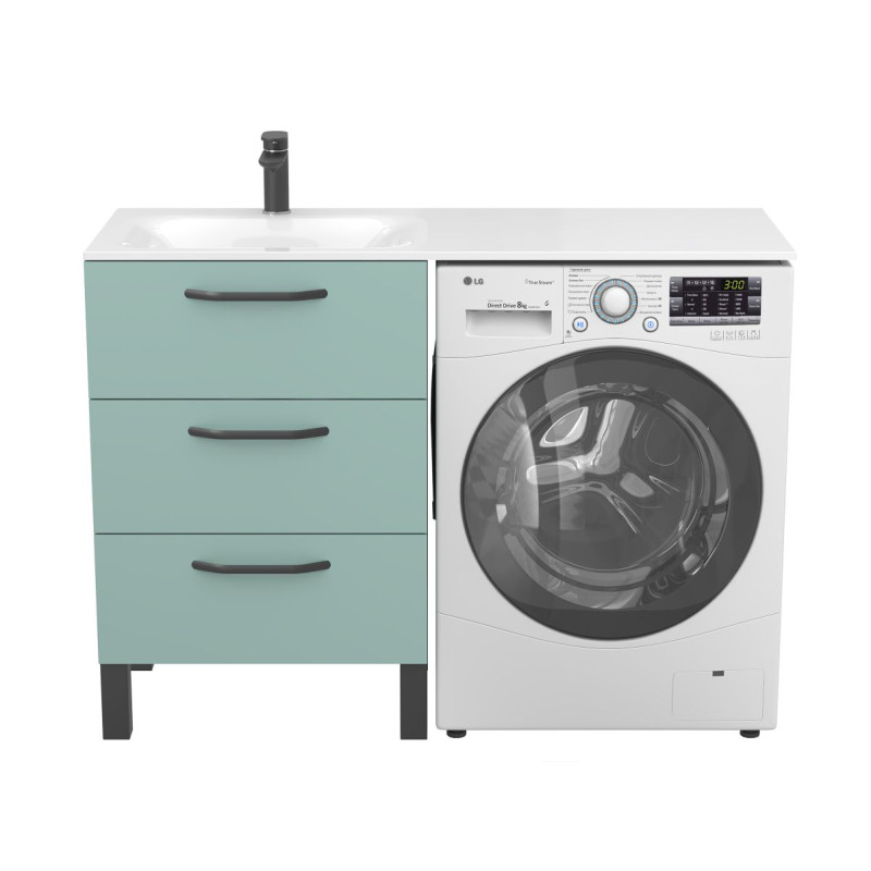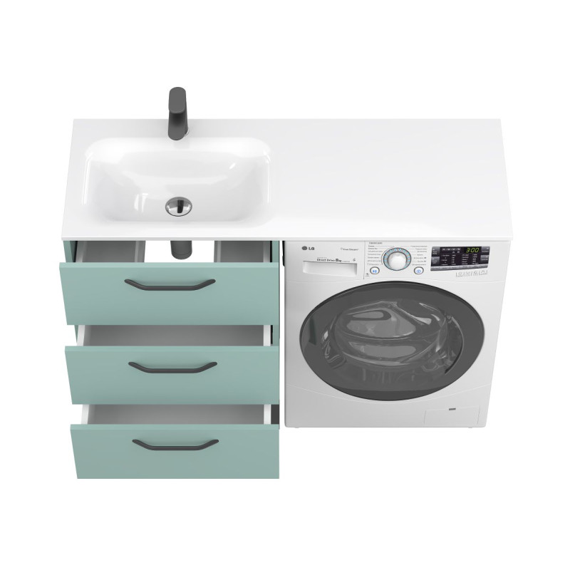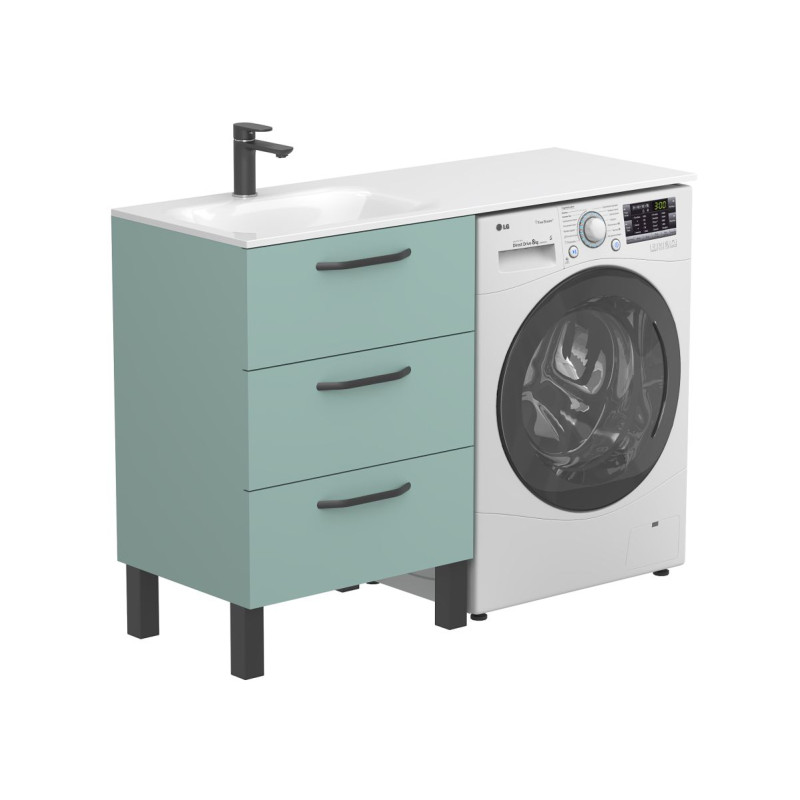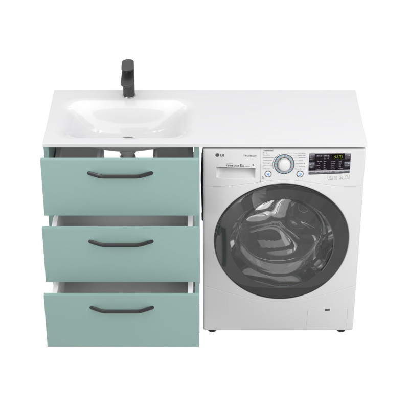Тумба підлогова TESSA Зелена з умивальником JESSEL 1200 L від бренду MIRAGGIO — практичне та стильне рішення для ванної кімнати дому, готелю чи апартаментів.