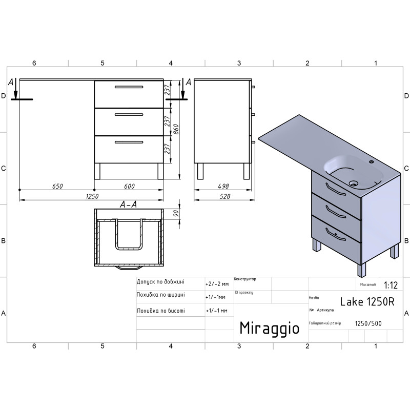 | Комплектація | Умивальник, тумба у зібраному вигляді |