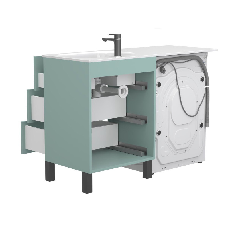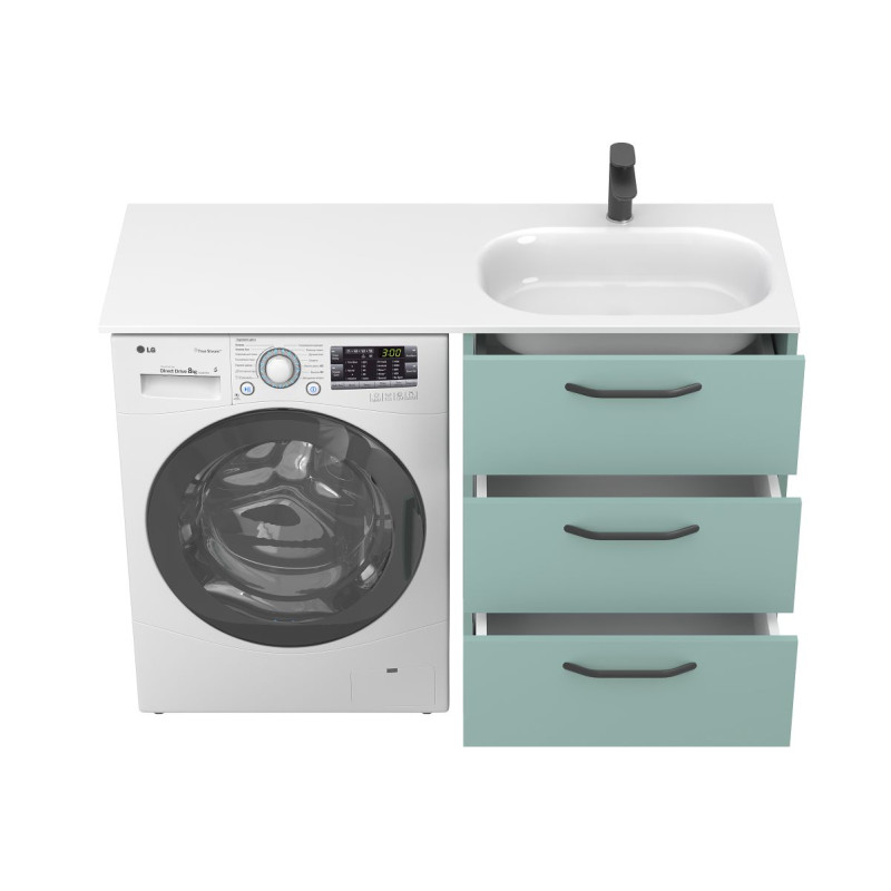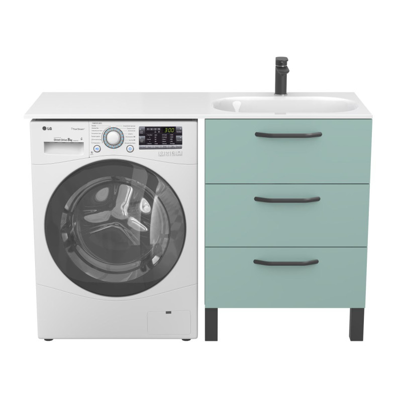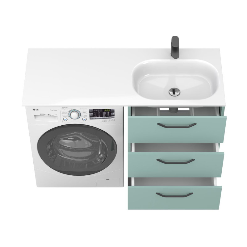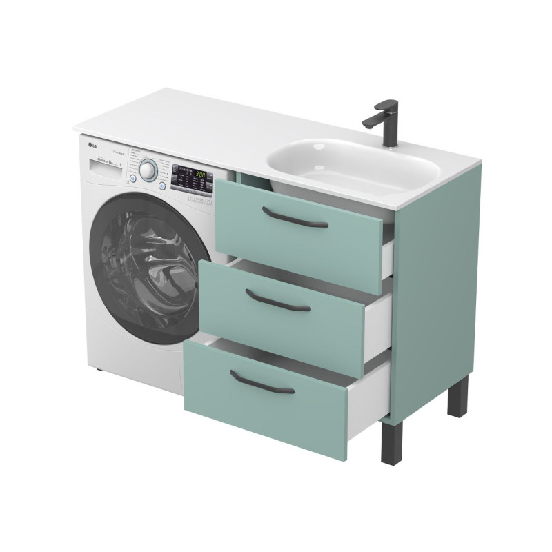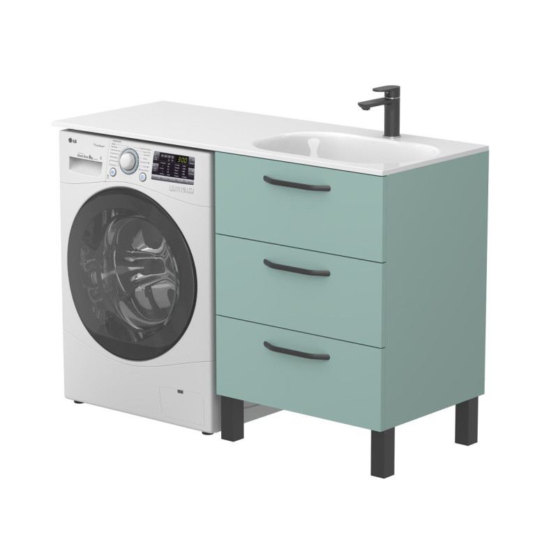 Тумба підлогова TESSA Зелена з умивальником LAKE 1250 R від бренду MIRAGGIO — практичне та стильне рішення для ванної кімнати дому, готелю чи апартаментів.