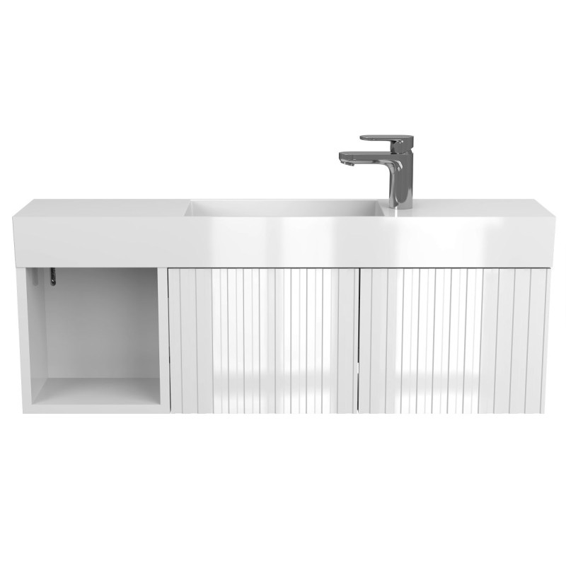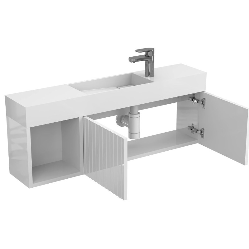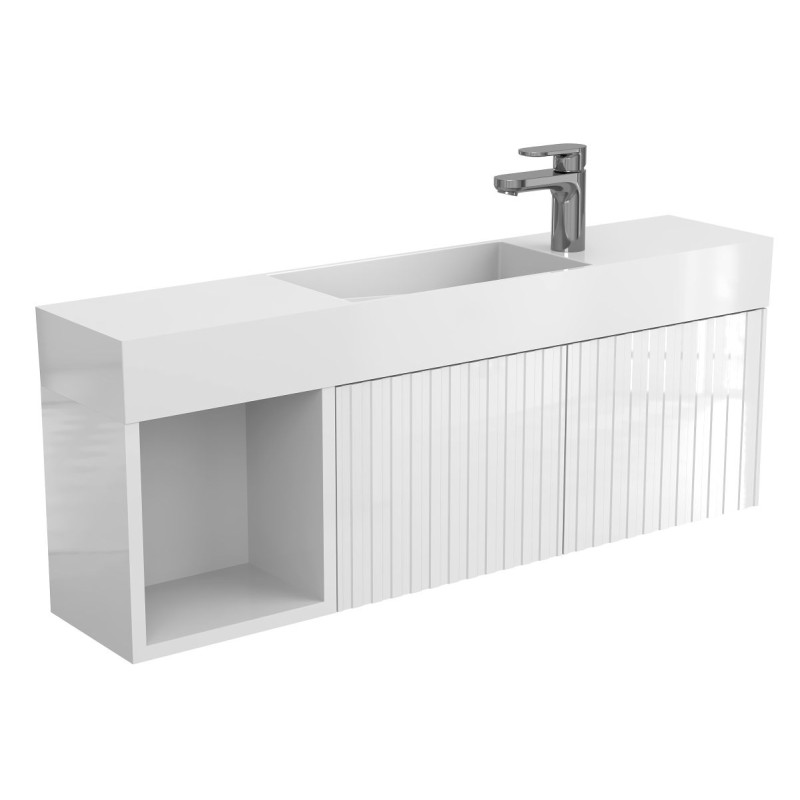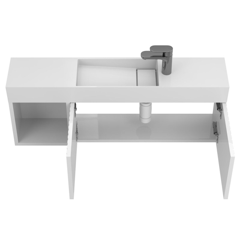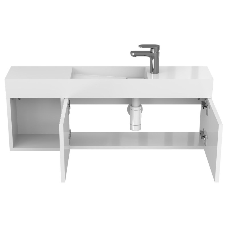 Тумба підвісна AURA біла глянцева з умивальником TONI 1050 від бренду MIRAGGIO — практичне та стильне рішення для ванної кімнати дому, готелю чи апартаментів.