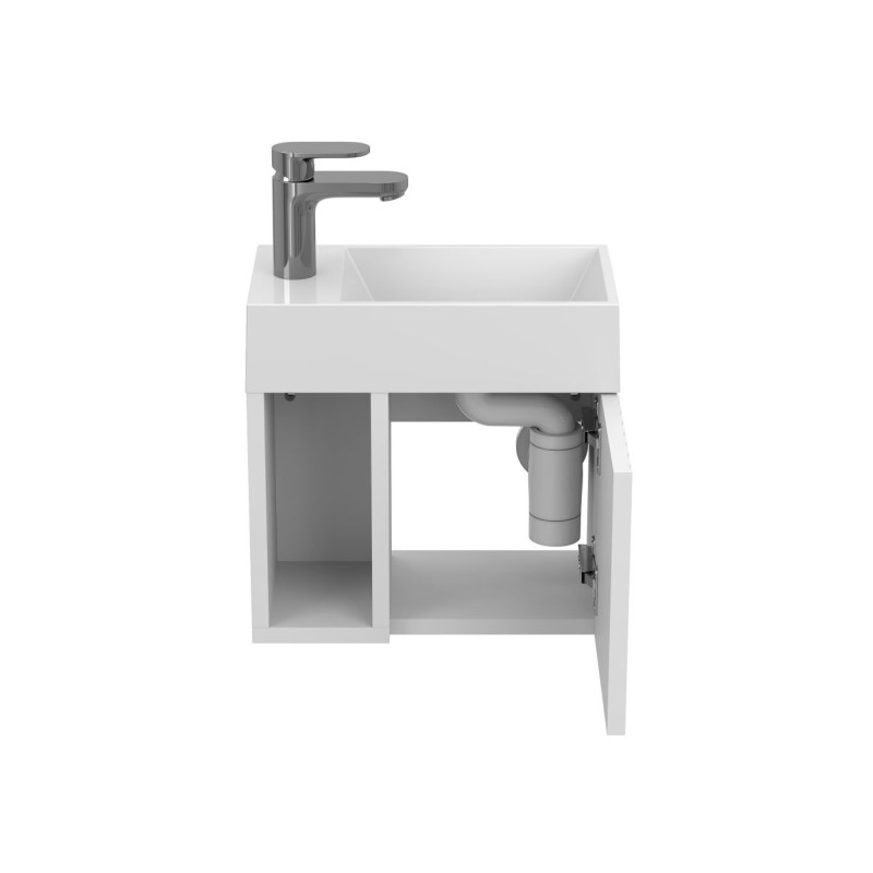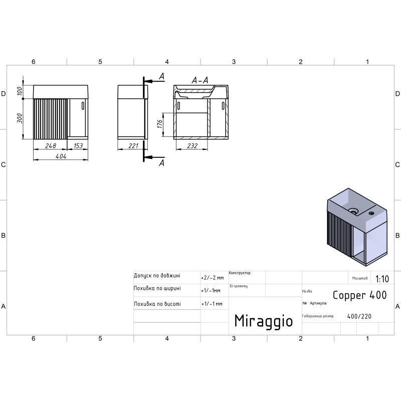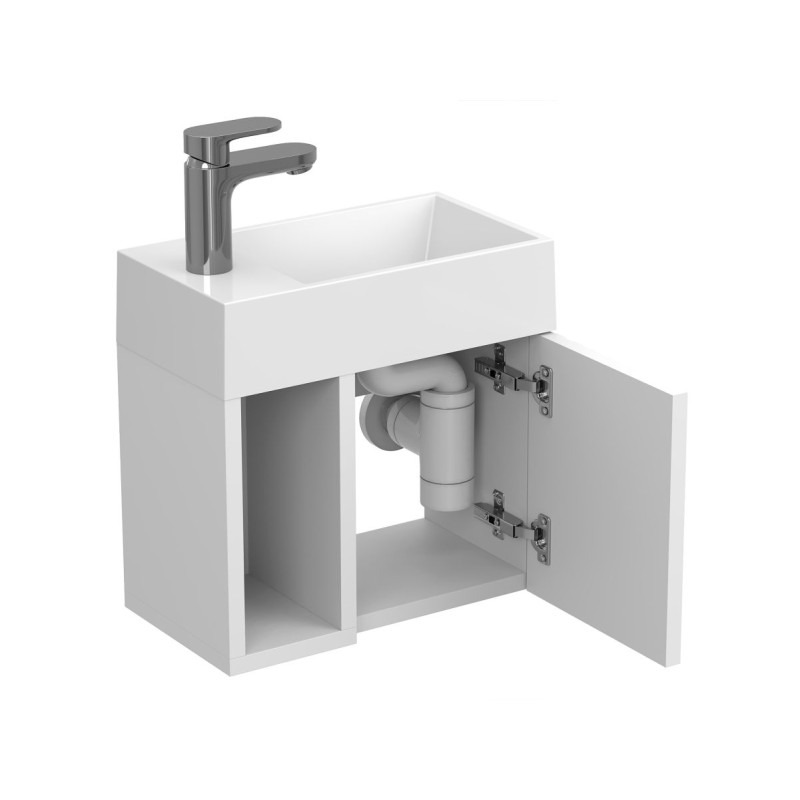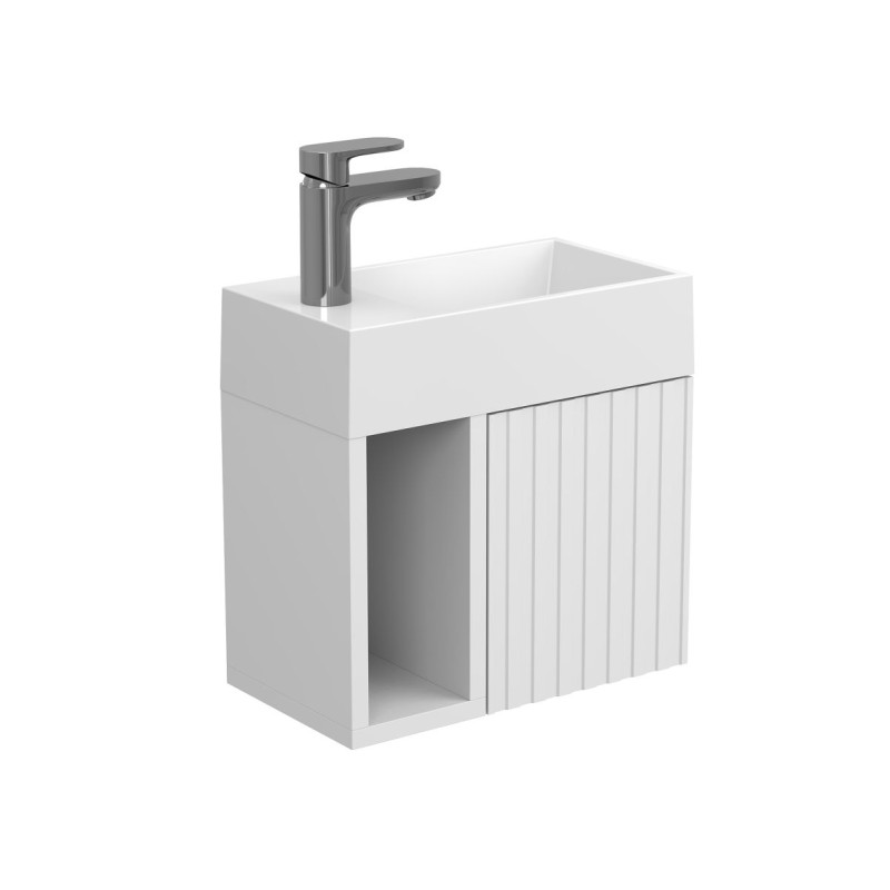 Тумба підвісна AURA біла матова з умивальником COPPER 400 від бренду MIRAGGIO — практичне та стильне рішення для ванної кімнати дому, готелю чи апартаментів.
