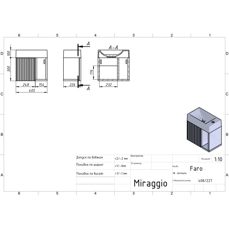 | Комплектація | Умивальник, тумба у зібраному вигляді |