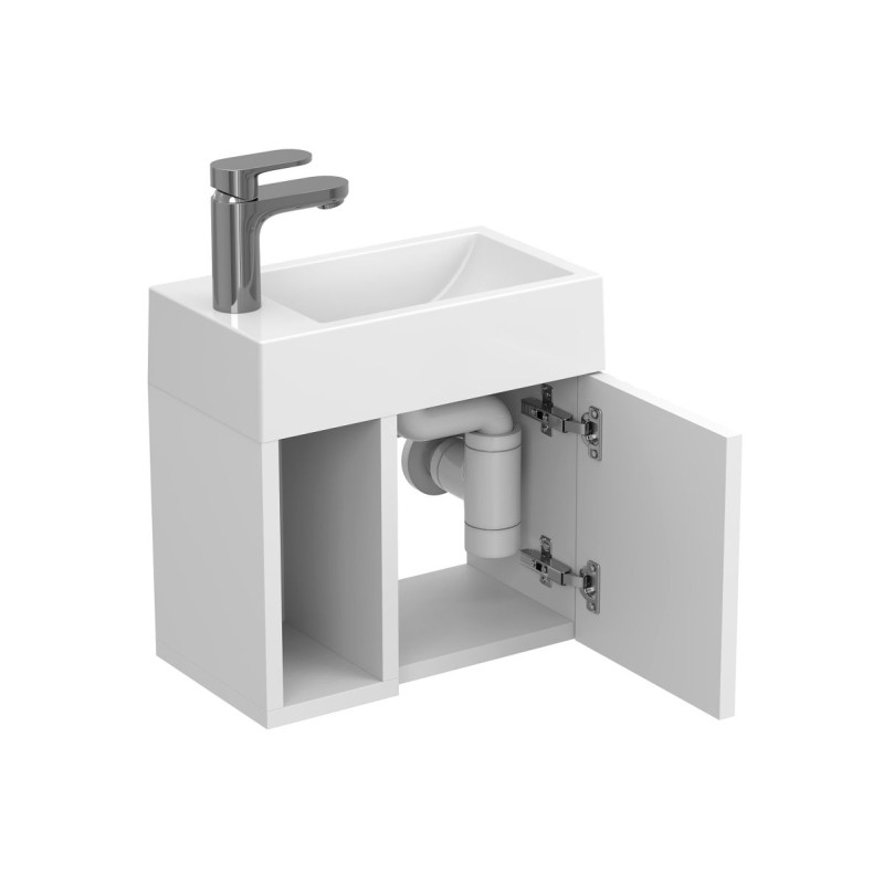 Тумба підвісна AURA біла матова з умивальником FARO від бренду MIRAGGIO — практичне та стильне рішення для ванної кімнати дому, готелю чи апартаментів.