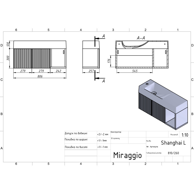 | Комплектація | Умивальник, тумба у зібраному вигляді |