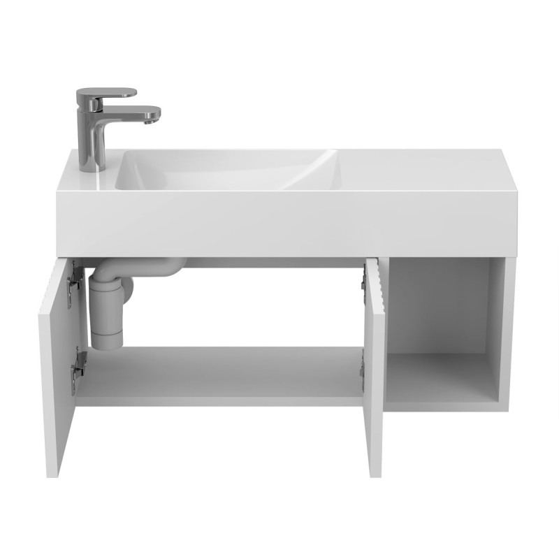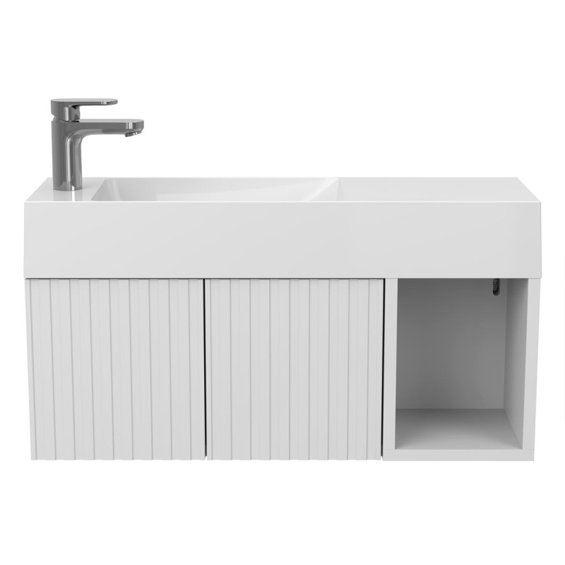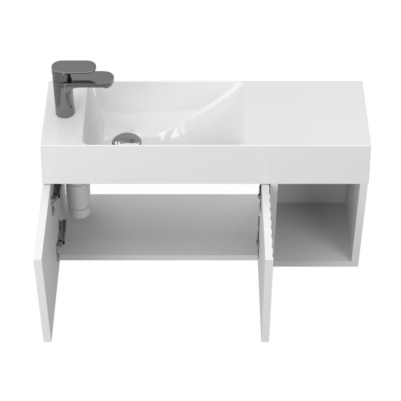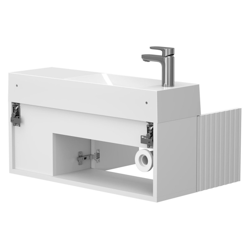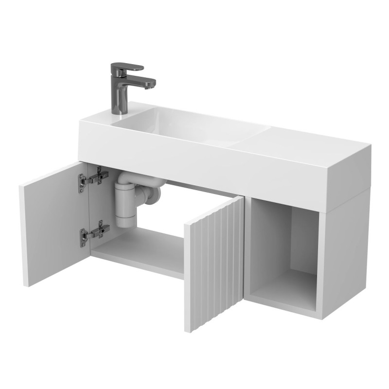Тумба підвісна AURA біла матова з умивальником SHANGHAI L від бренду MIRAGGIO — практичне та стильне рішення для ванної кімнати дому, готелю чи апартаментів.