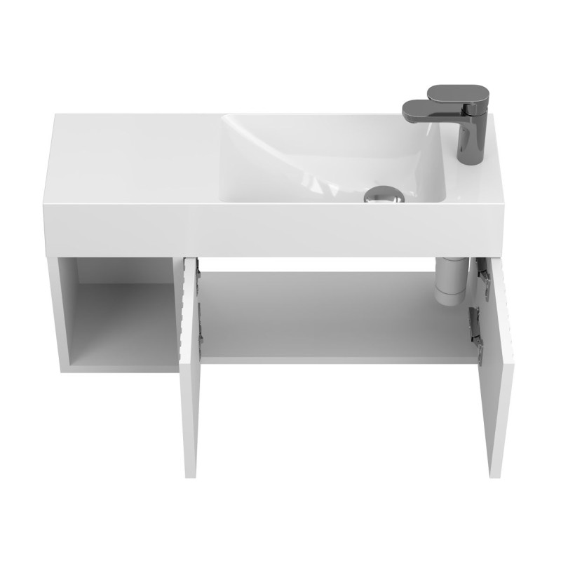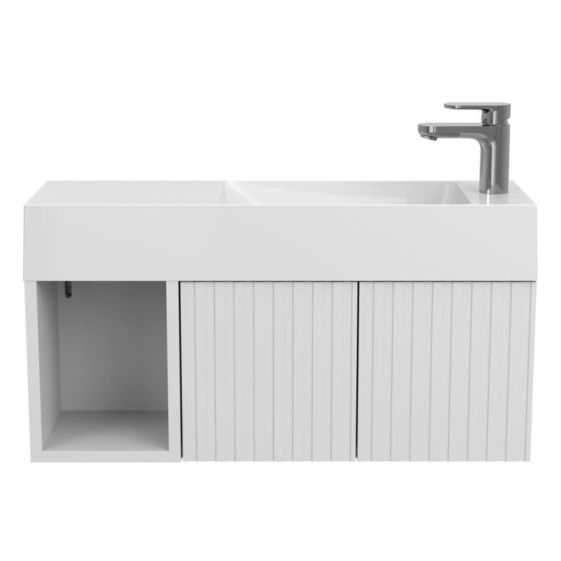 Тумба підвісна AURA біла матова з умивальником SHANGHAI R від бренду MIRAGGIO — практичне та стильне рішення для ванної кімнати дому, готелю чи апартаментів.