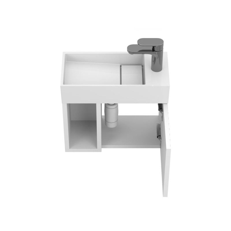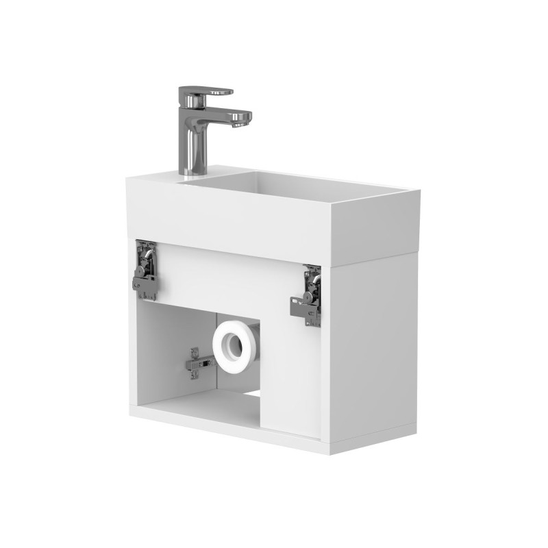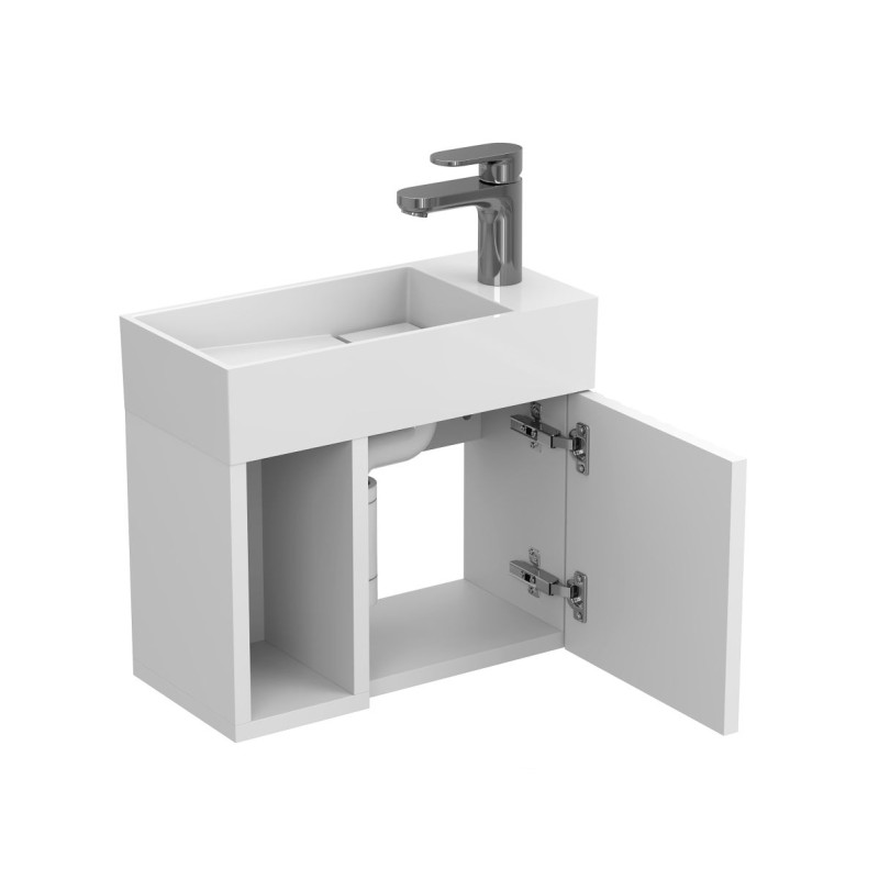 Тумба підвісна AURA біла матова з умивальником TONI 450 від бренду MIRAGGIO — практичне та стильне рішення для ванної кімнати дому, готелю чи апартаментів.