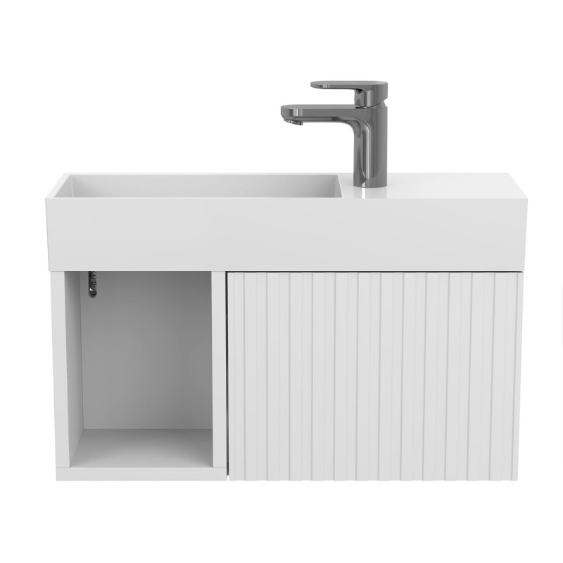 Тумба підвісна AURA біла матова з умивальником TONI 650 від бренду MIRAGGIO — практичне та стильне рішення для ванної кімнати дому, готелю чи апартаментів.