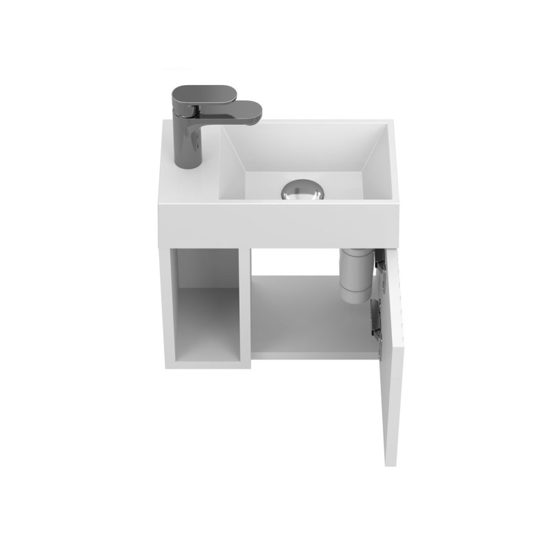 Тумба підвісна AURA біла soft-touch з умивальником COPPER 400 від бренду MIRAGGIO — практичне та стильне рішення для ванної кімнати дому, готелю чи апартаментів.