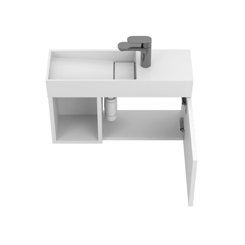 Корпус виготовлений з МДФ Білий soft-touch фарбований, що забезпечує міцність, вологостійкість та довгий термін експлуатації.
