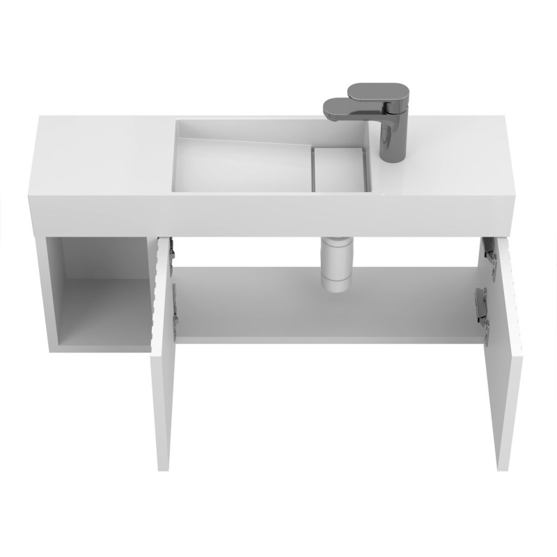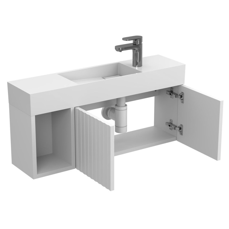 Тумба підвісна AURA біла soft-touch з умивальником TONI 850 від бренду MIRAGGIO — практичне та стильне рішення для ванної кімнати дому, готелю чи апартаментів.