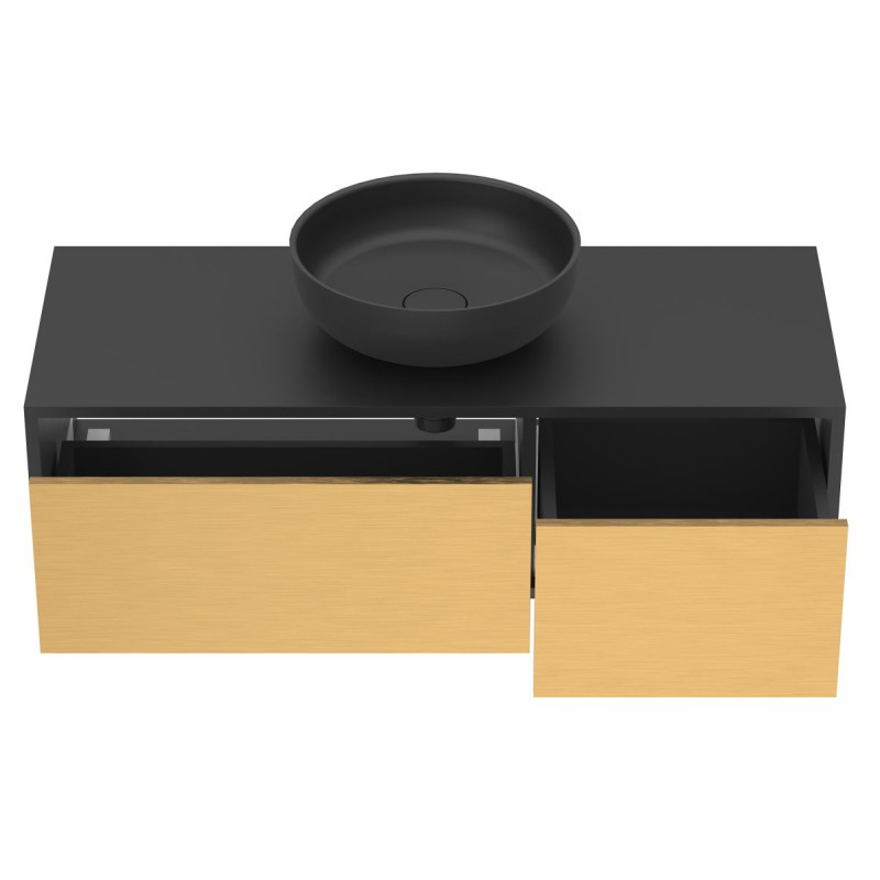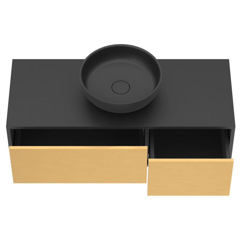 Тумба підвісна CLOUD 1100 Пікасо золото з умивальником MOON від бренду MIRAGGIO — практичне та стильне рішення для ванної кімнати дому, готелю чи апартаментів.