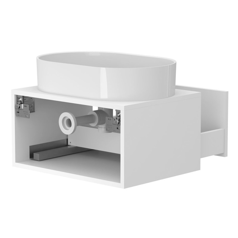 Корпус виготовлений з МДФ Білий мат, що забезпечує міцність, вологостійкість та довгий термін експлуатації.