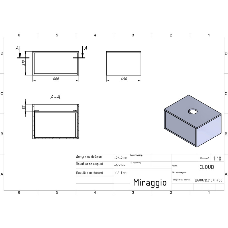 | Кількість шухляд | 1 (із системою м’якого зачинення) |