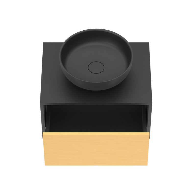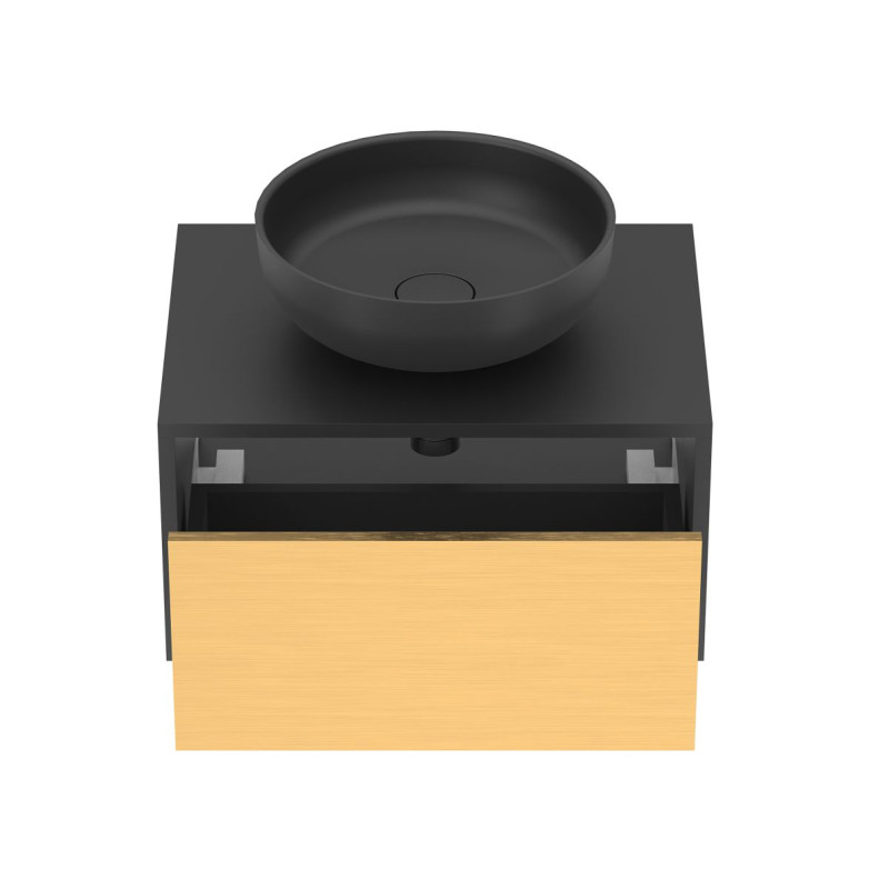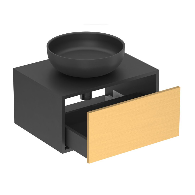 Тумба підвісна CLOUD 600 Пікасо золото з умивальником MOON від бренду MIRAGGIO — практичне та стильне рішення для ванної кімнати дому, готелю чи апартаментів.