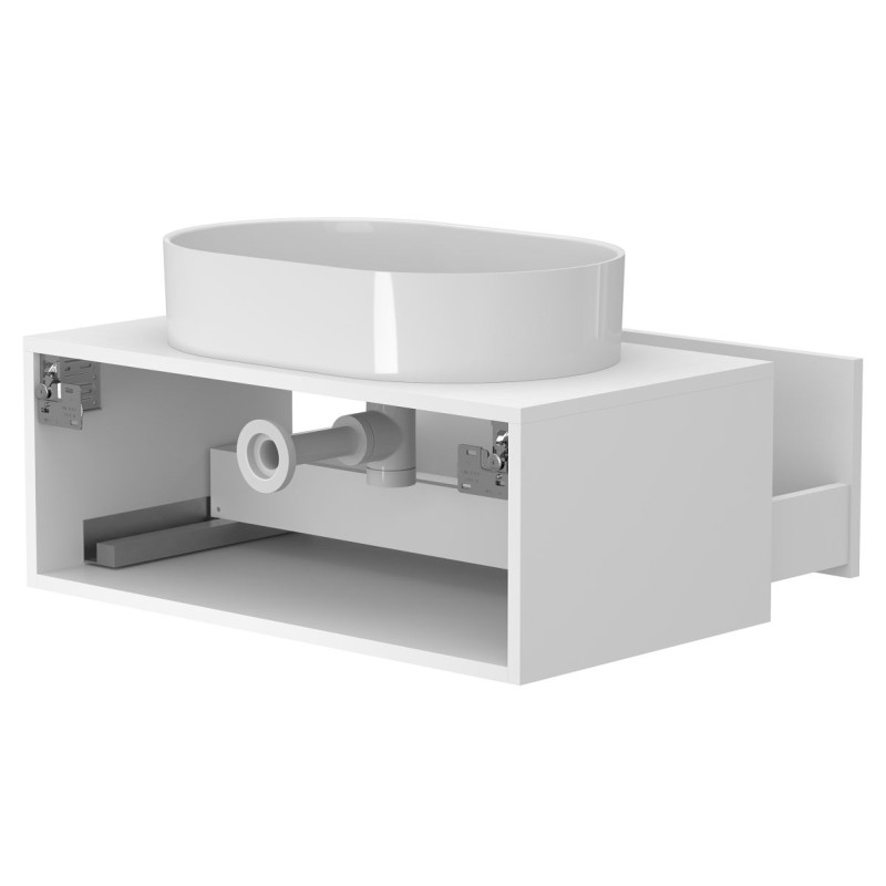 Корпус виготовлений з МДФ Білий мат, що забезпечує міцність, вологостійкість та довгий термін експлуатації.