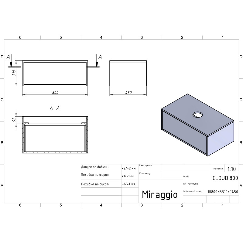 | Кількість шухляд | 1 (із системою м’якого зачинення) |