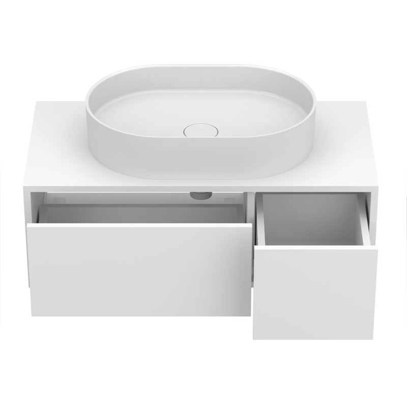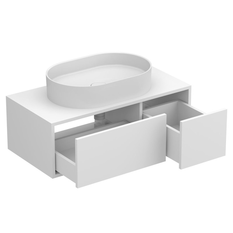 Тумба підвісна CLOUD 900 Біла матова з умивальником KIRA від бренду MIRAGGIO — практичне та стильне рішення для ванної кімнати дому, готелю чи апартаментів.