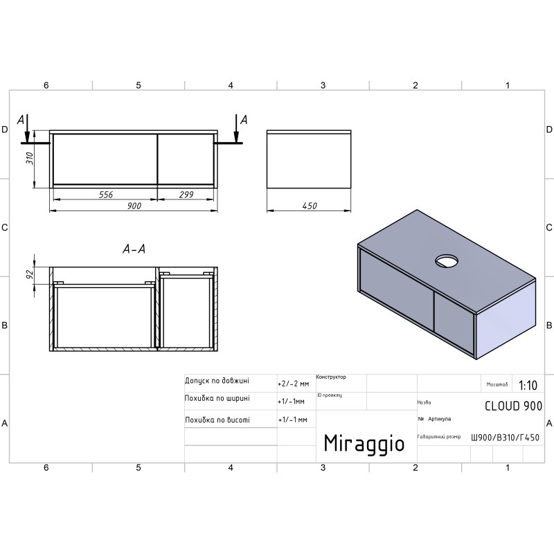 Ширина виробу — 900 мм робить модель зручною для приміщень різної площі. Спосіб відчинення шухляд у даній моделі тумби - Push-Оpen.