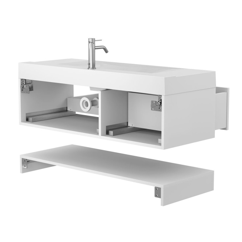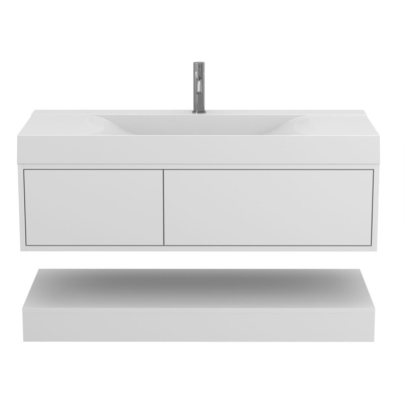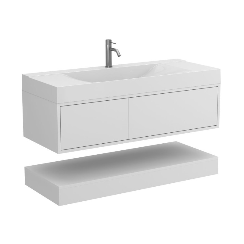 Тумба підвісна DUO Біла з умивальником FLY 1200 від бренду MIRAGGIO — практичне та стильне рішення для ванної кімнати дому, готелю чи апартаментів.