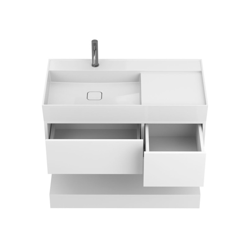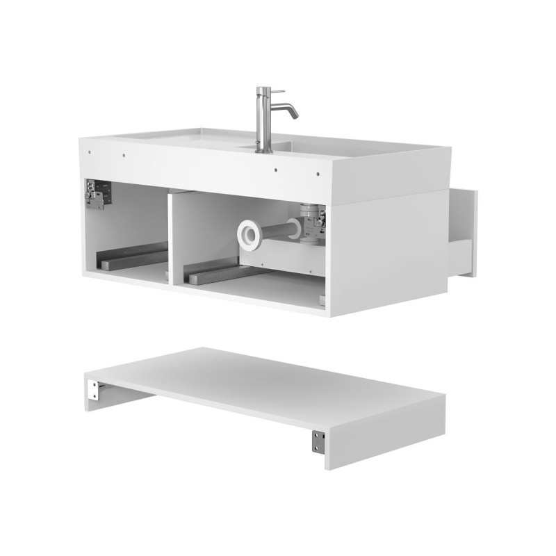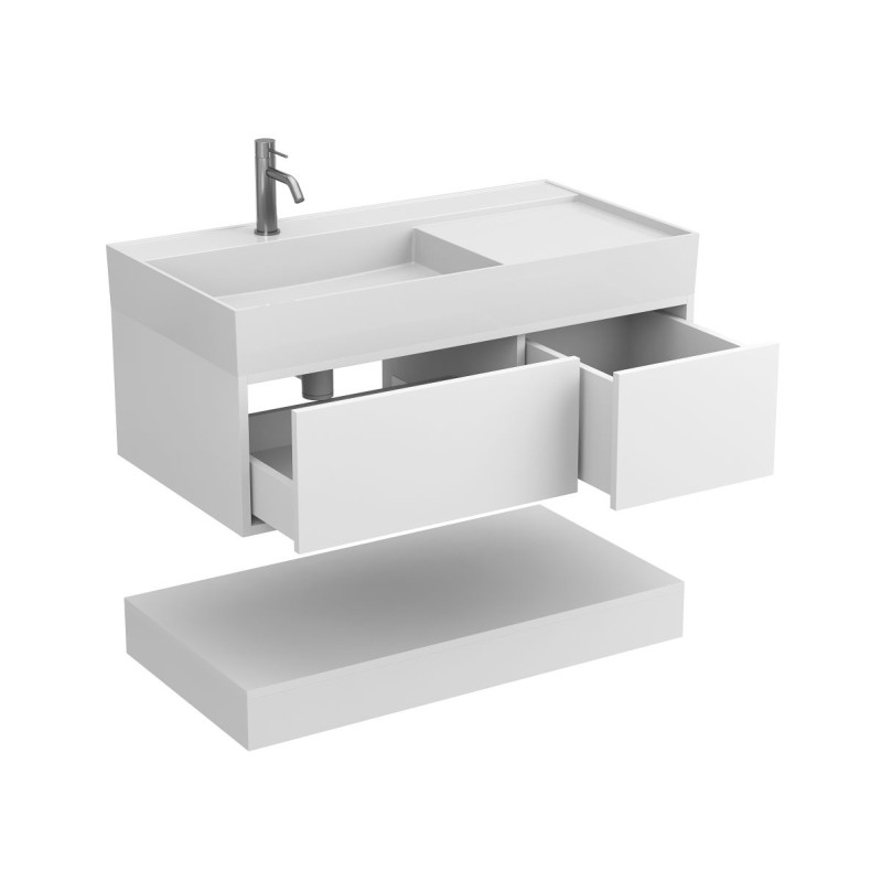 Тумба підвісна DUO Біла з умивальником SOUL 1000 від бренду MIRAGGIO — практичне та стильне рішення для ванної кімнати дому, готелю чи апартаментів.