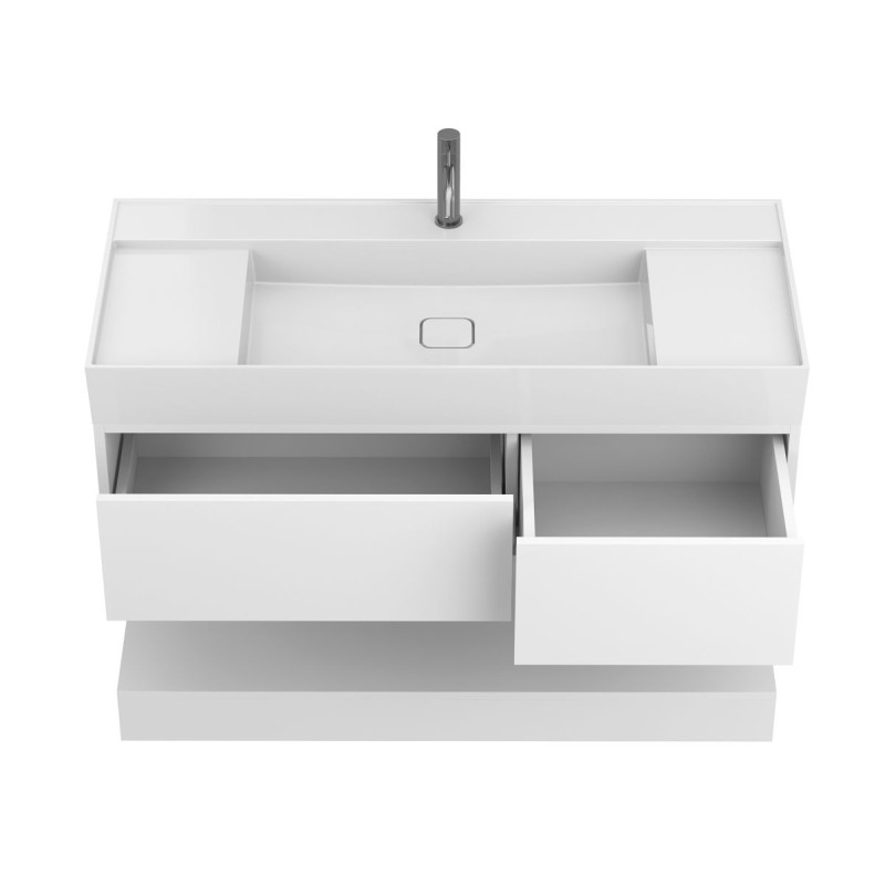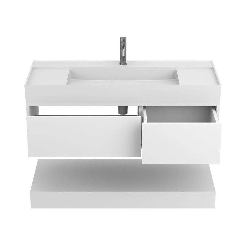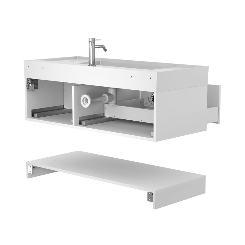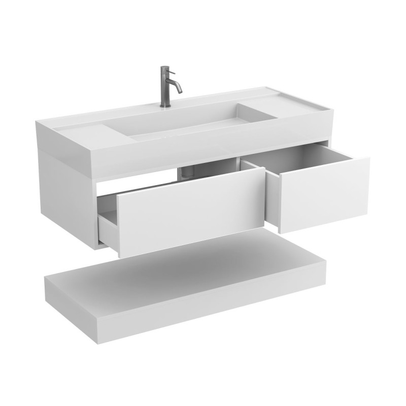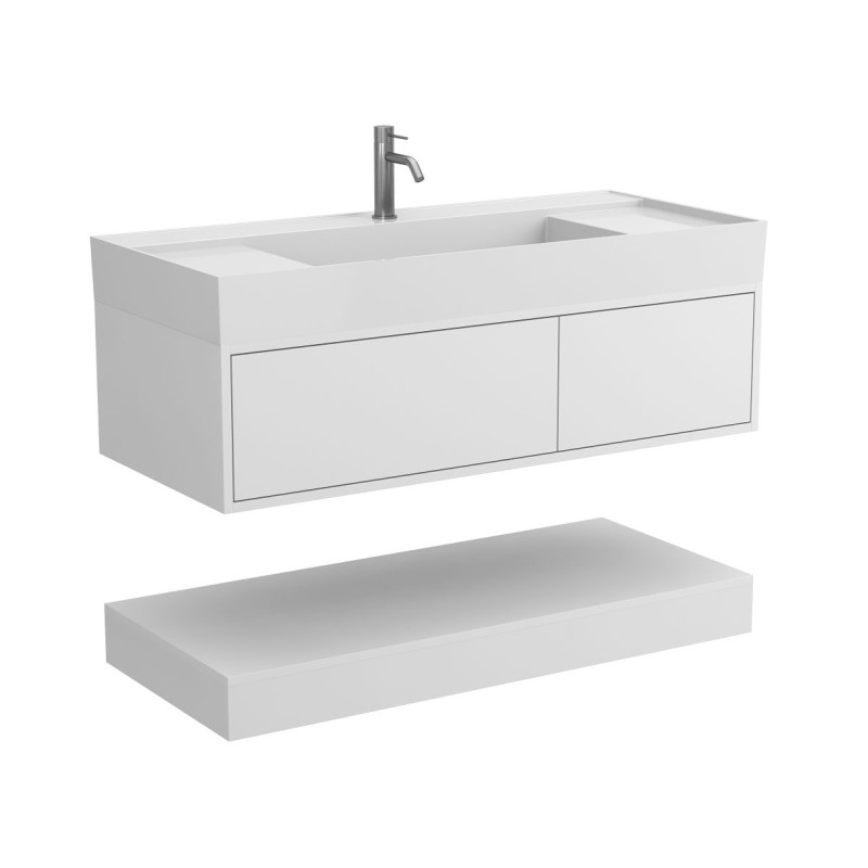 Тумба підвісна DUO Біла з умивальником SOUL 1200 від бренду MIRAGGIO — практичне та стильне рішення для ванної кімнати дому, готелю чи апартаментів.