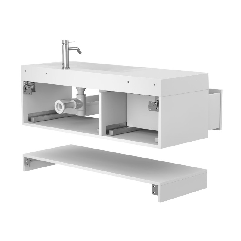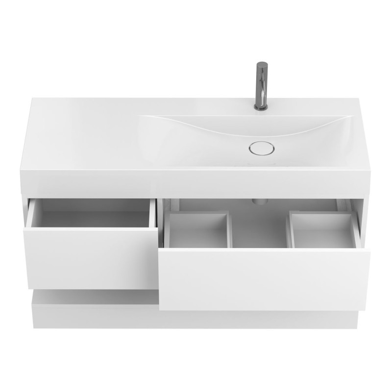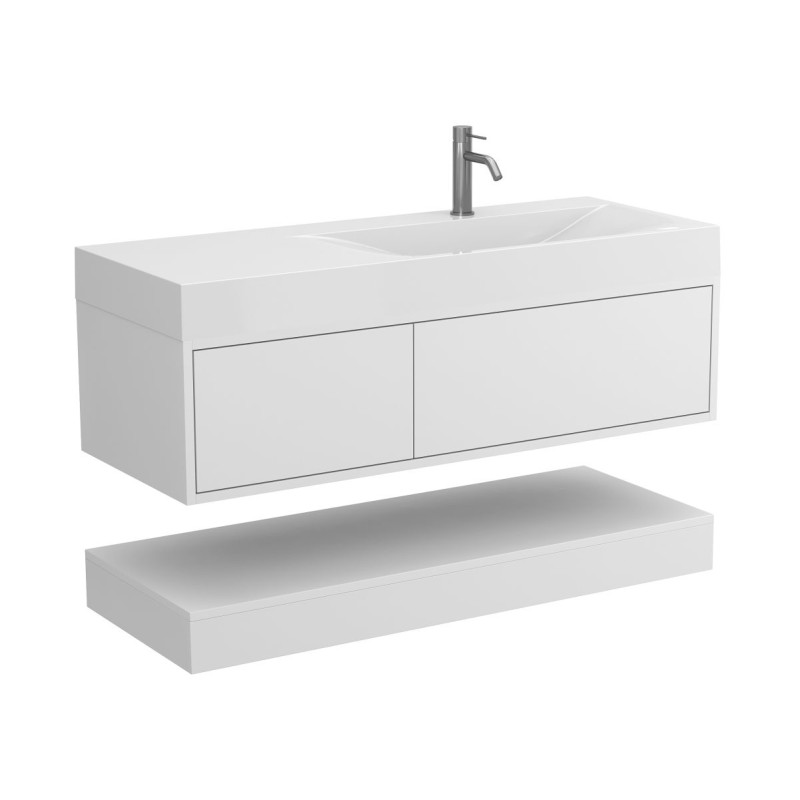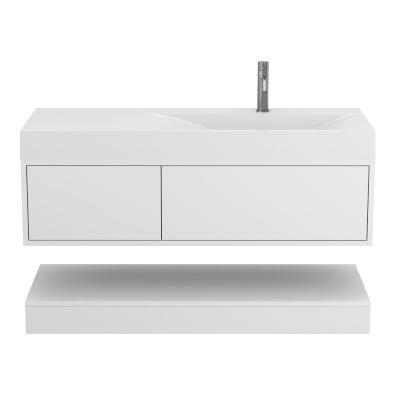 Тумба підвісна DUO Біла з умивальником VIOLA 1200 R від бренду MIRAGGIO — практичне та стильне рішення для ванної кімнати дому, готелю чи апартаментів.
