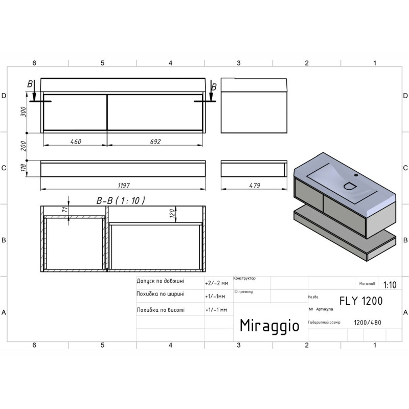 | Раковина в комплекті | FLY 1200 |